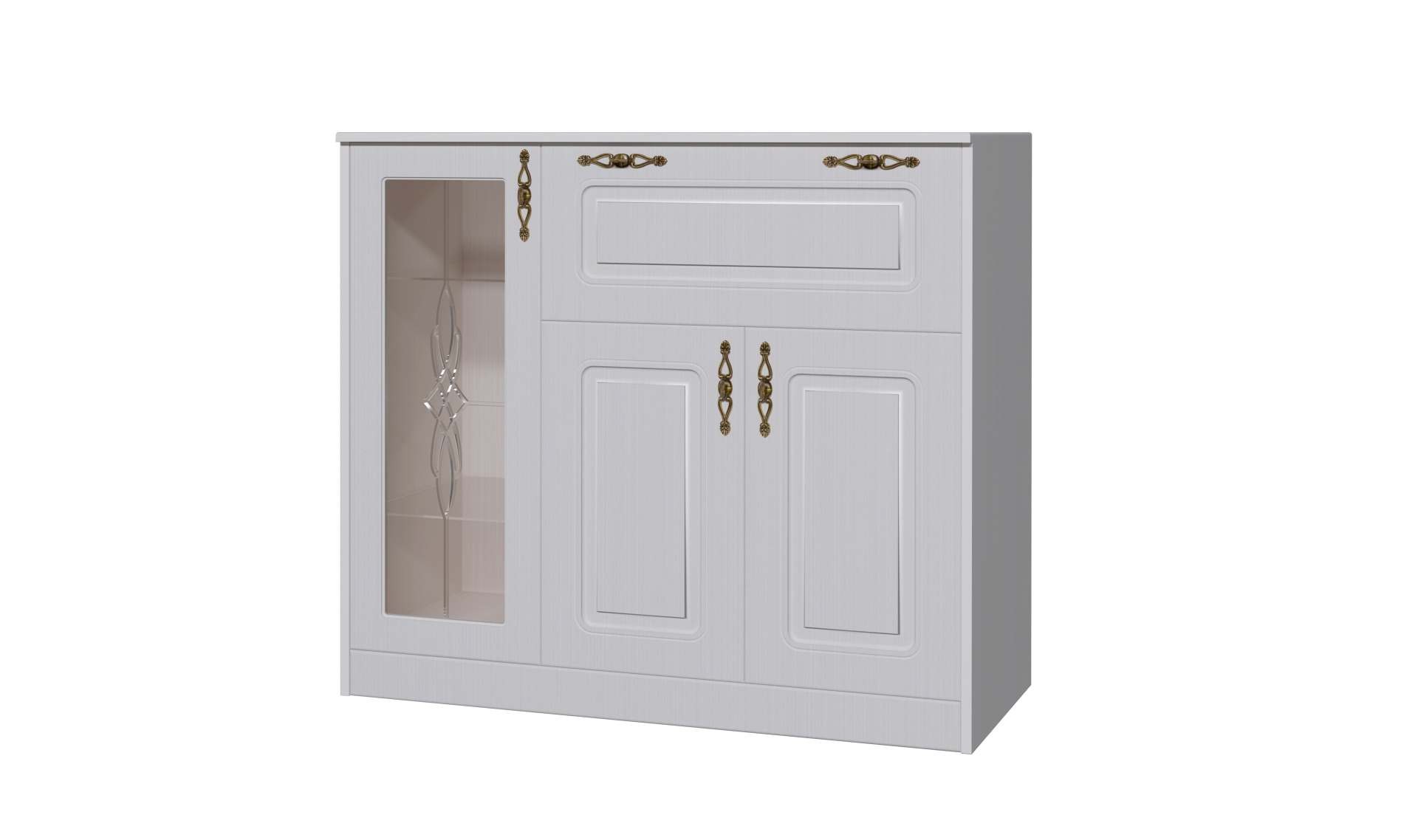 Комод со вставкой из стекла В-11 «Венеция» МДФ Сандал белый/Рамух