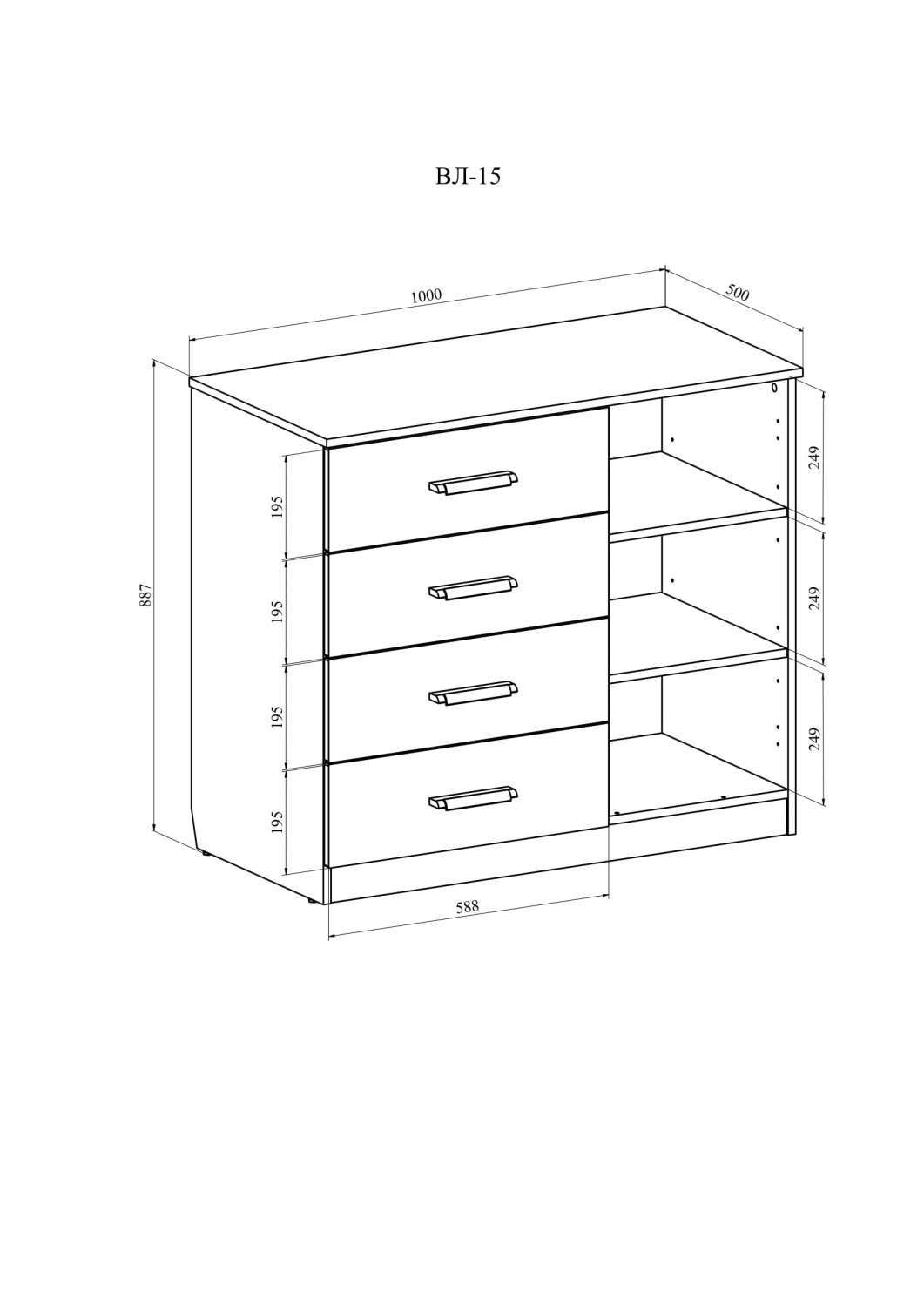| Количество ящиков комода | 4 ящика |