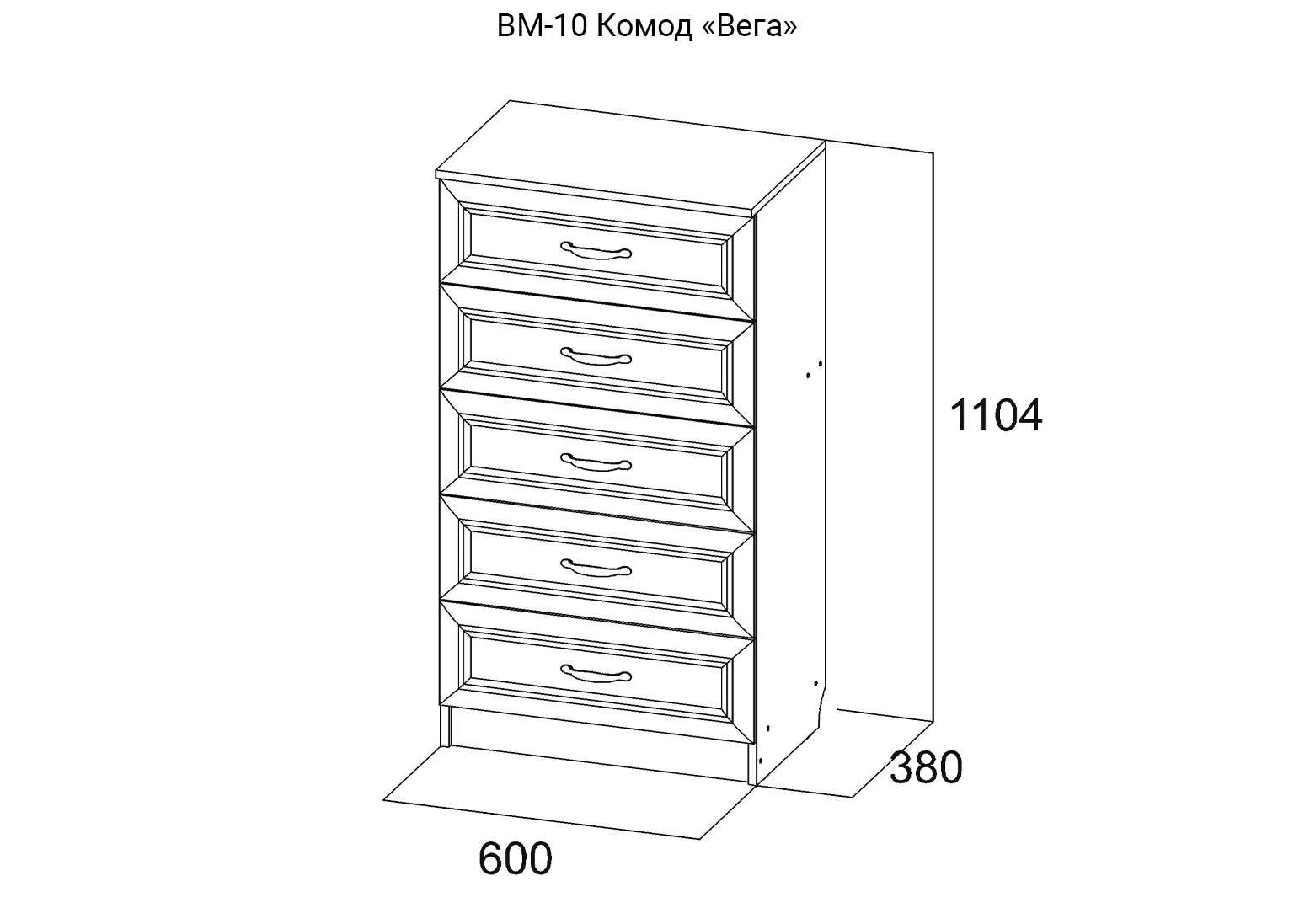 | Количество ящиков комода | 5 ящиков |