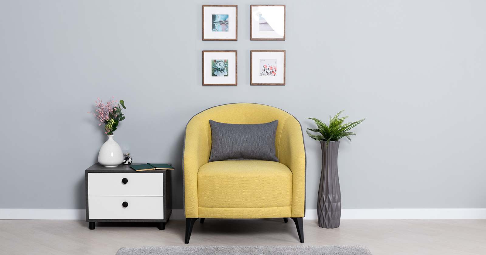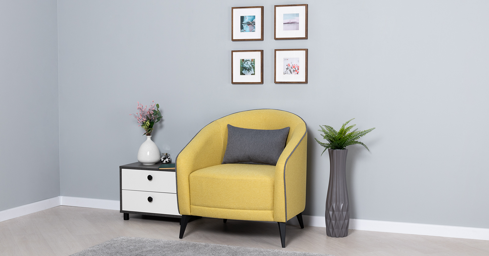 Кресло для отдыха «Бернис» ТК 447 Сага еллоу (желтый)/Сага дарк грей (темно-серый)