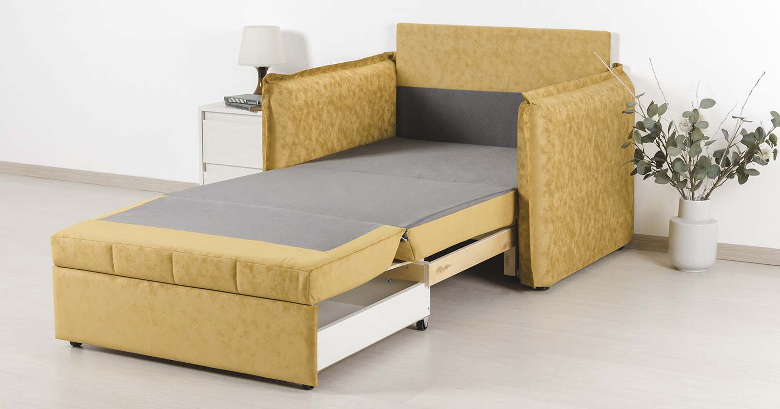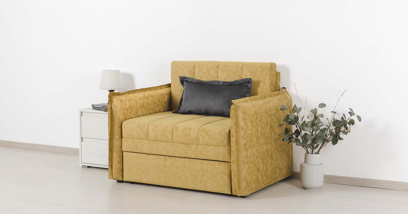 Кресло-кровать «Виола 85» ТД 233 Аляска мустард (горчичный)/Силкшайн 103 (угольный)