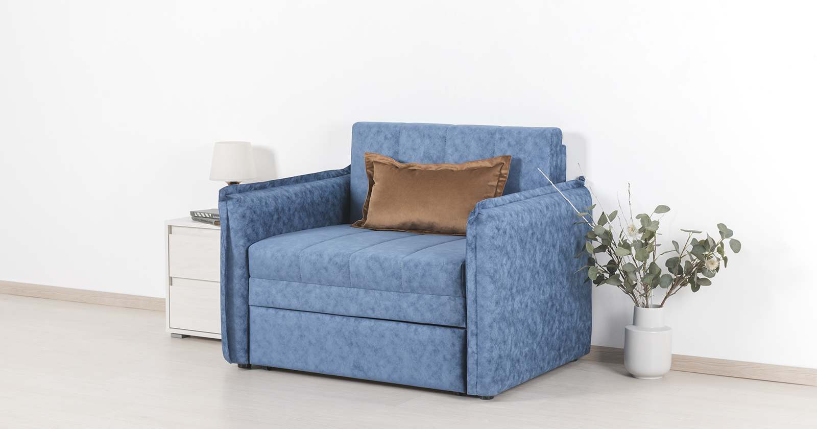 Кресло-кровать «Виола 85» ТД 235 Аляска деним (тёмно-синий)/Силкшайн 73 (золотисто-коричневый)