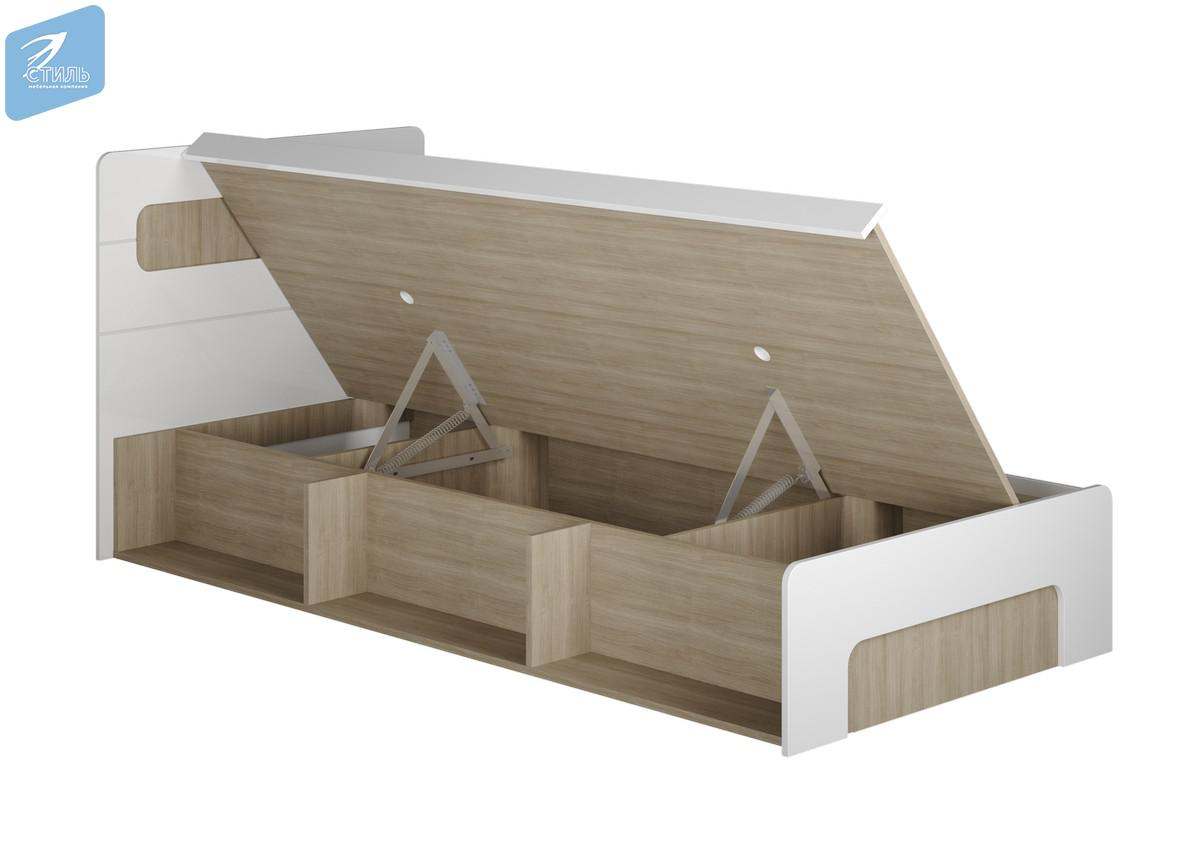 Кровать 0,9 с подъемным механизмом «Палермо-3» Ясень шимо светлый/МДФ Белый глянец