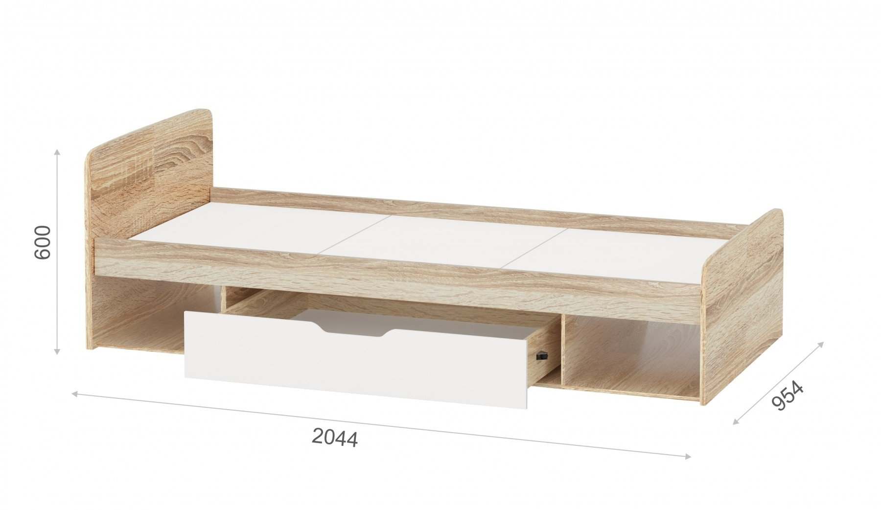 Кровать 90 «Стелс» Дуб Сонома/Белый