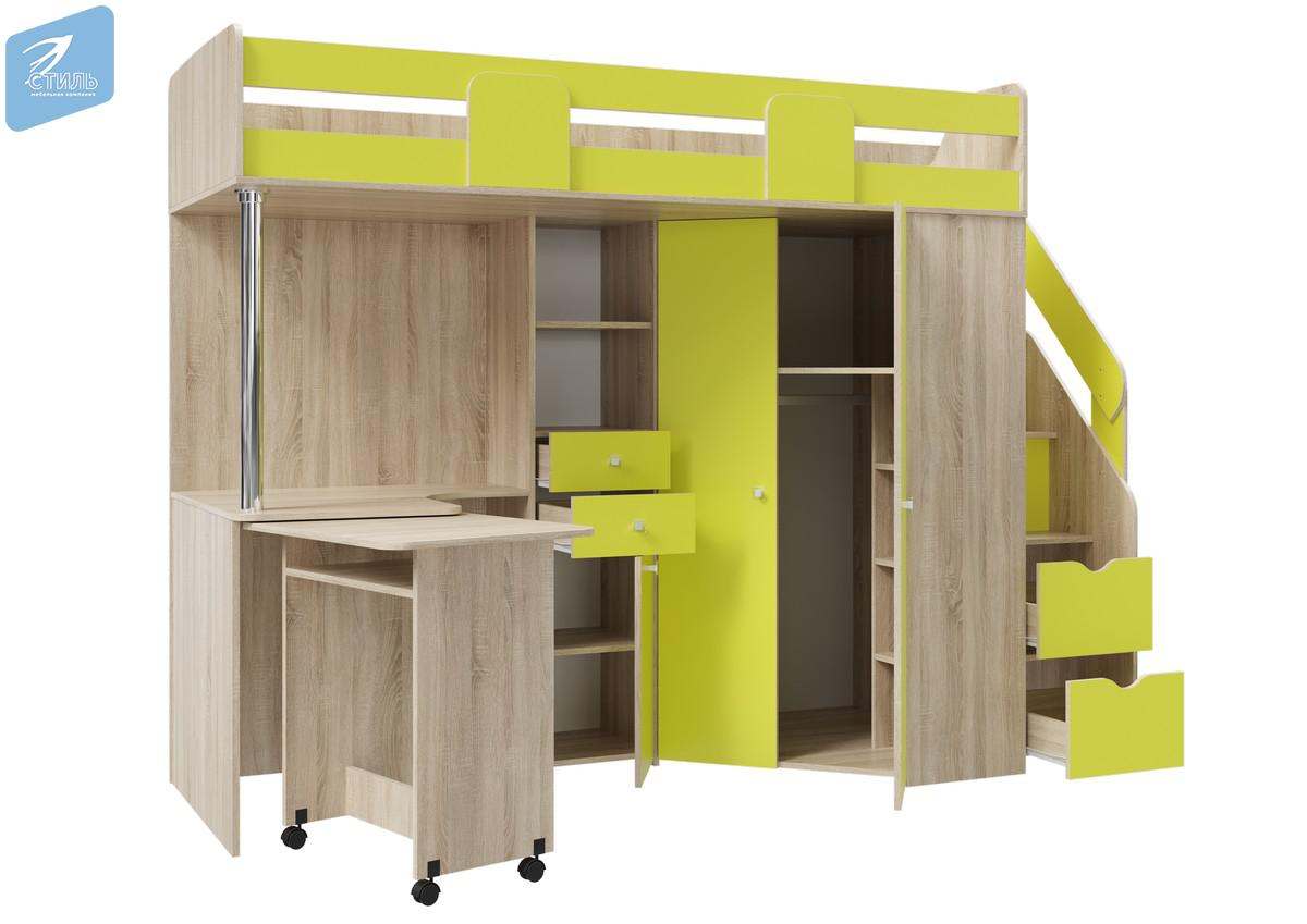 Кровать-чердак «Мийа-А» Дуб Сонома светлый/Лайм