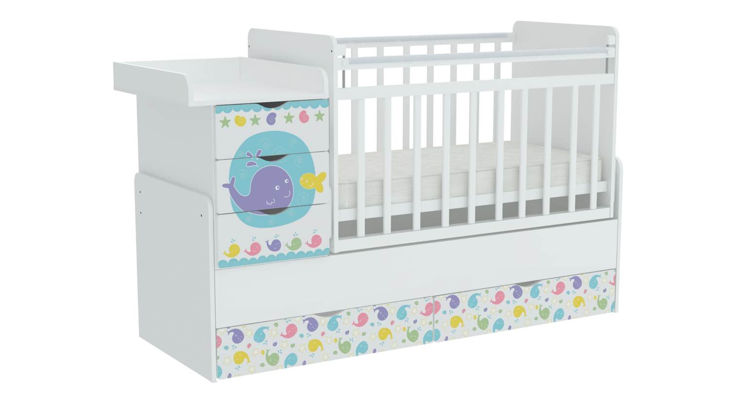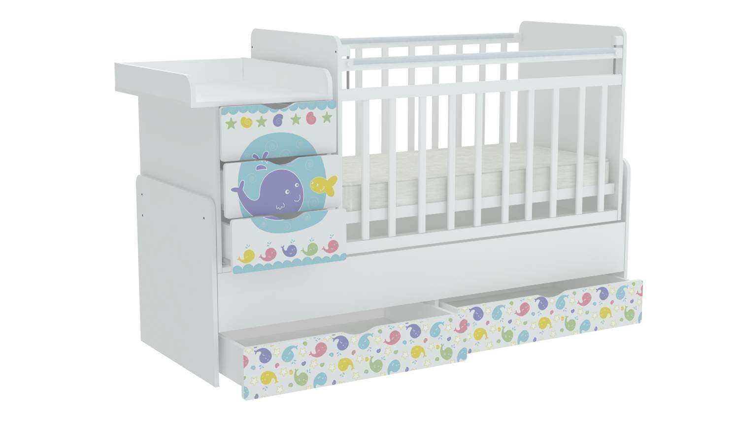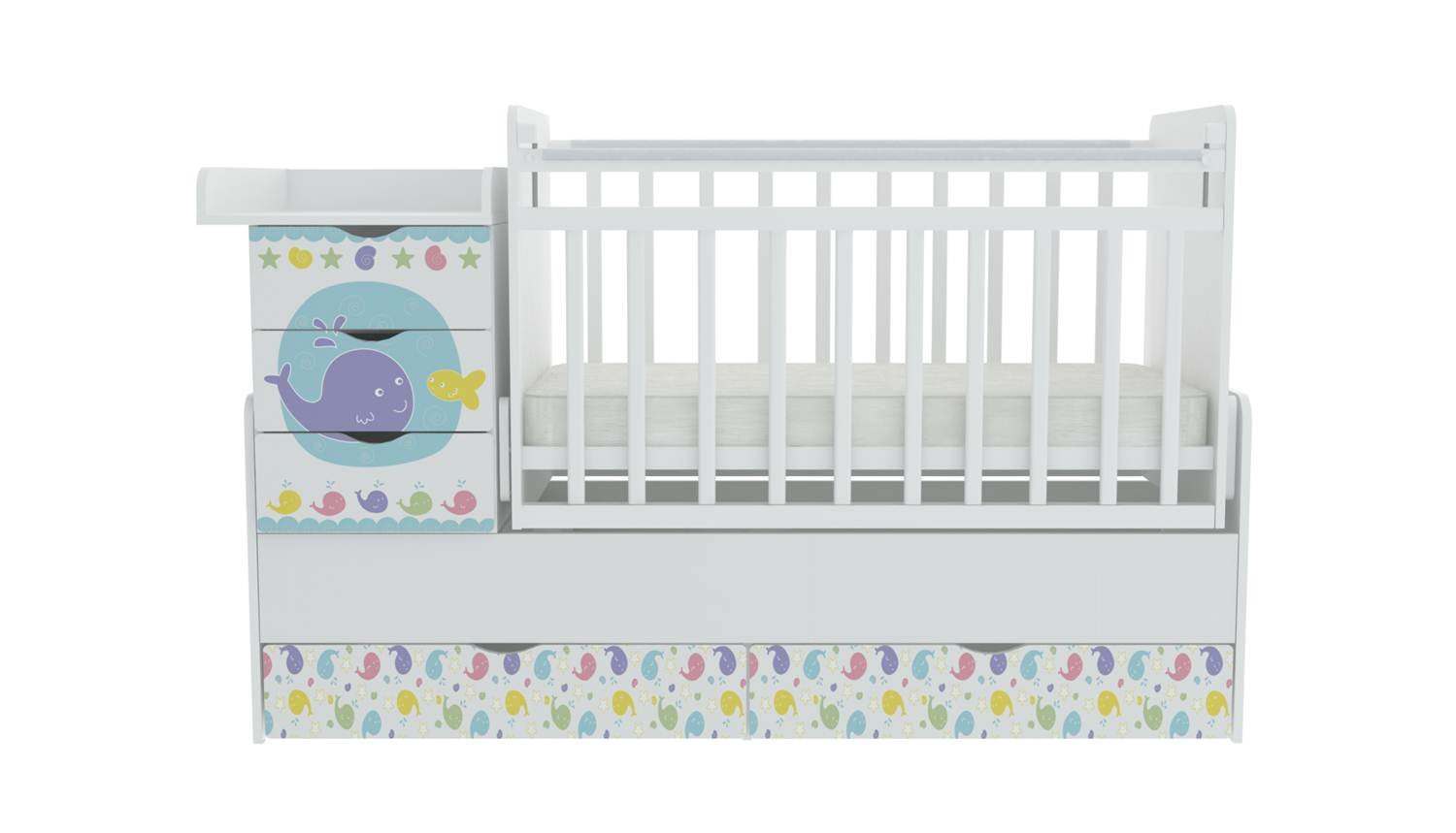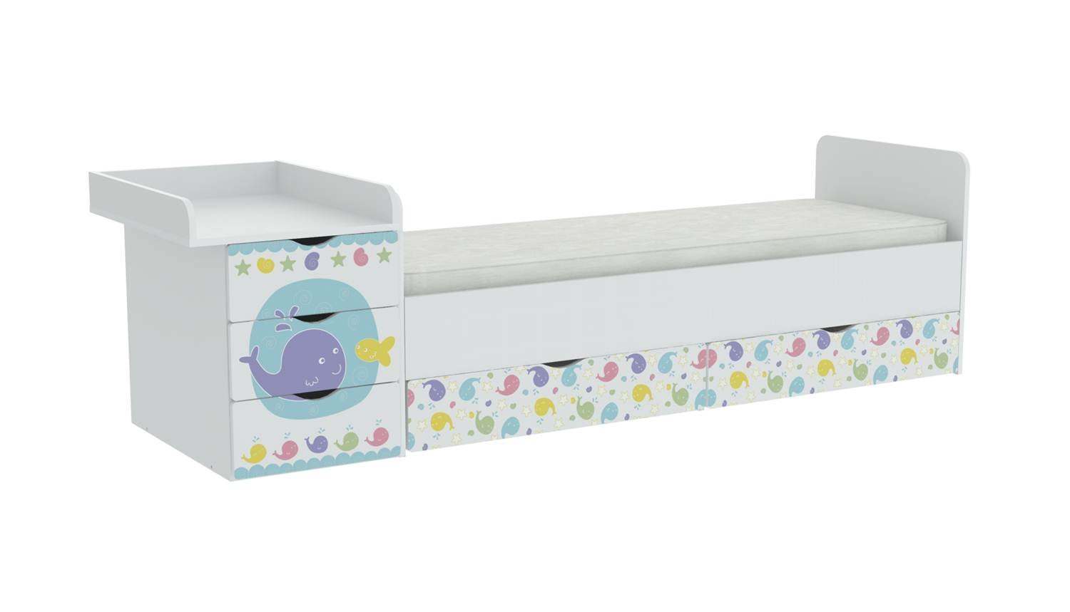 Кровать детская «Фея» 1150 Морская история, белый