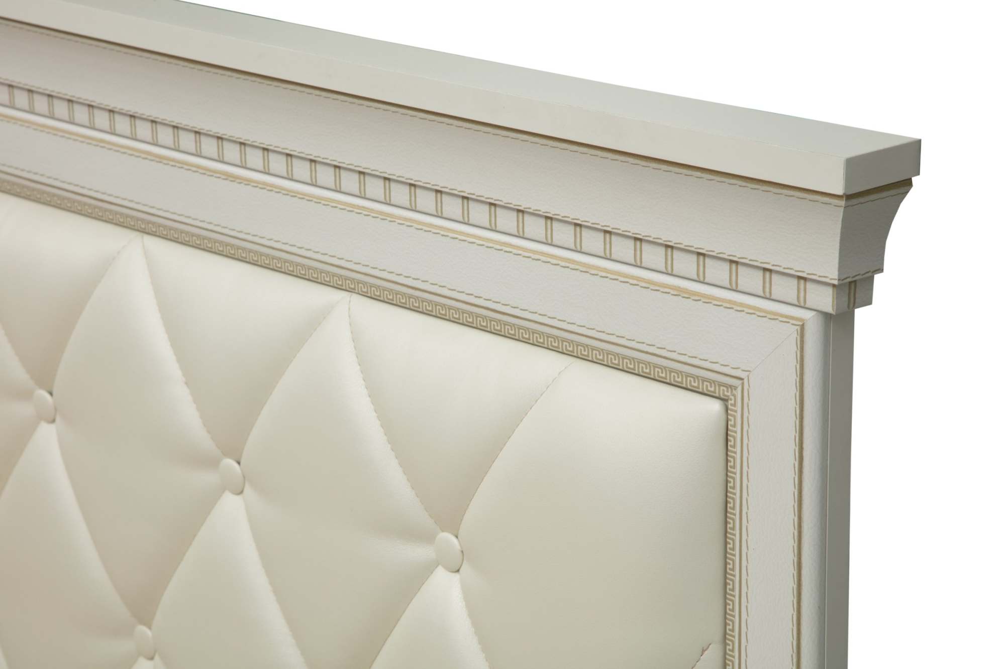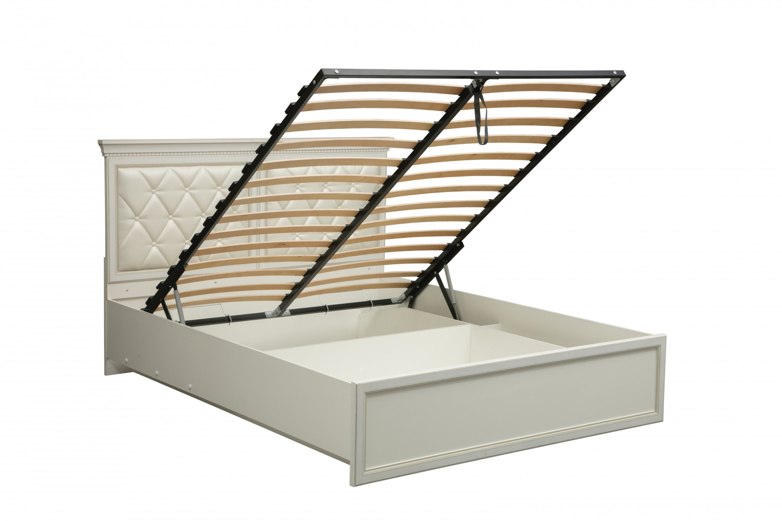 Кровать двойная 40.12-03 с подъемным механизмом «Эльмира» 1600 Белый/Белая кожа патина