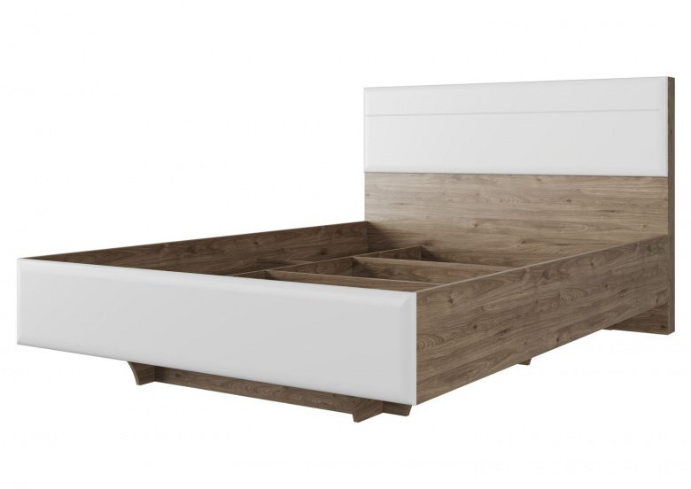 Кровать двойная Люкс 160 «Лагуна-8» Гикори темный/Белый матовый
