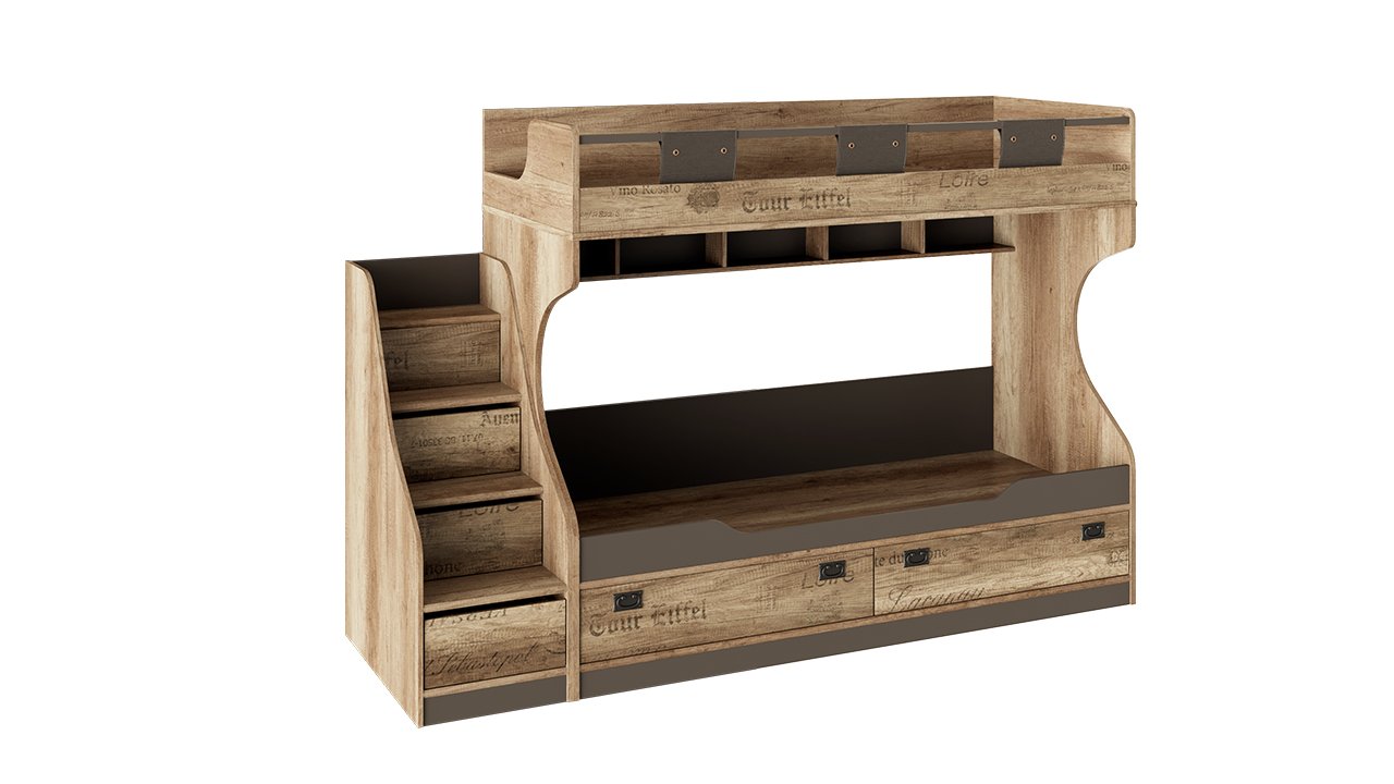 - Кровать двухъярусная с приставной лестницей «Пилигрим» (Дуб Каньон светлый, Фон серый)