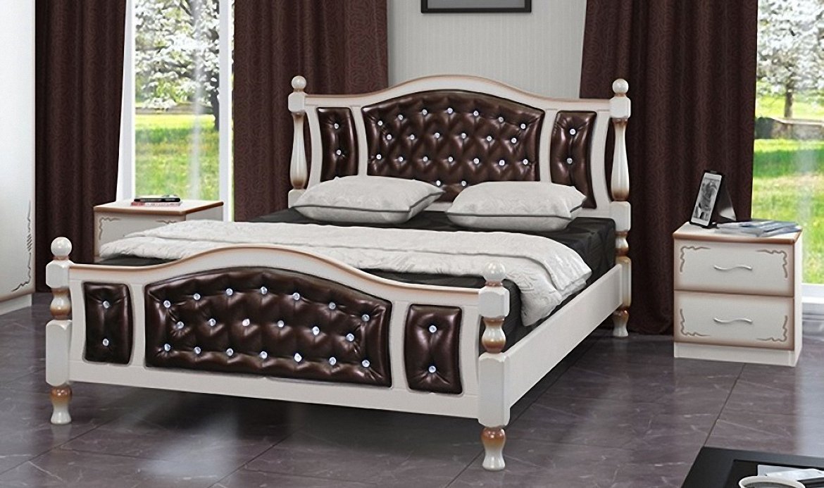 Кровать «Жасмин» Дуб молочный, темная кожа
