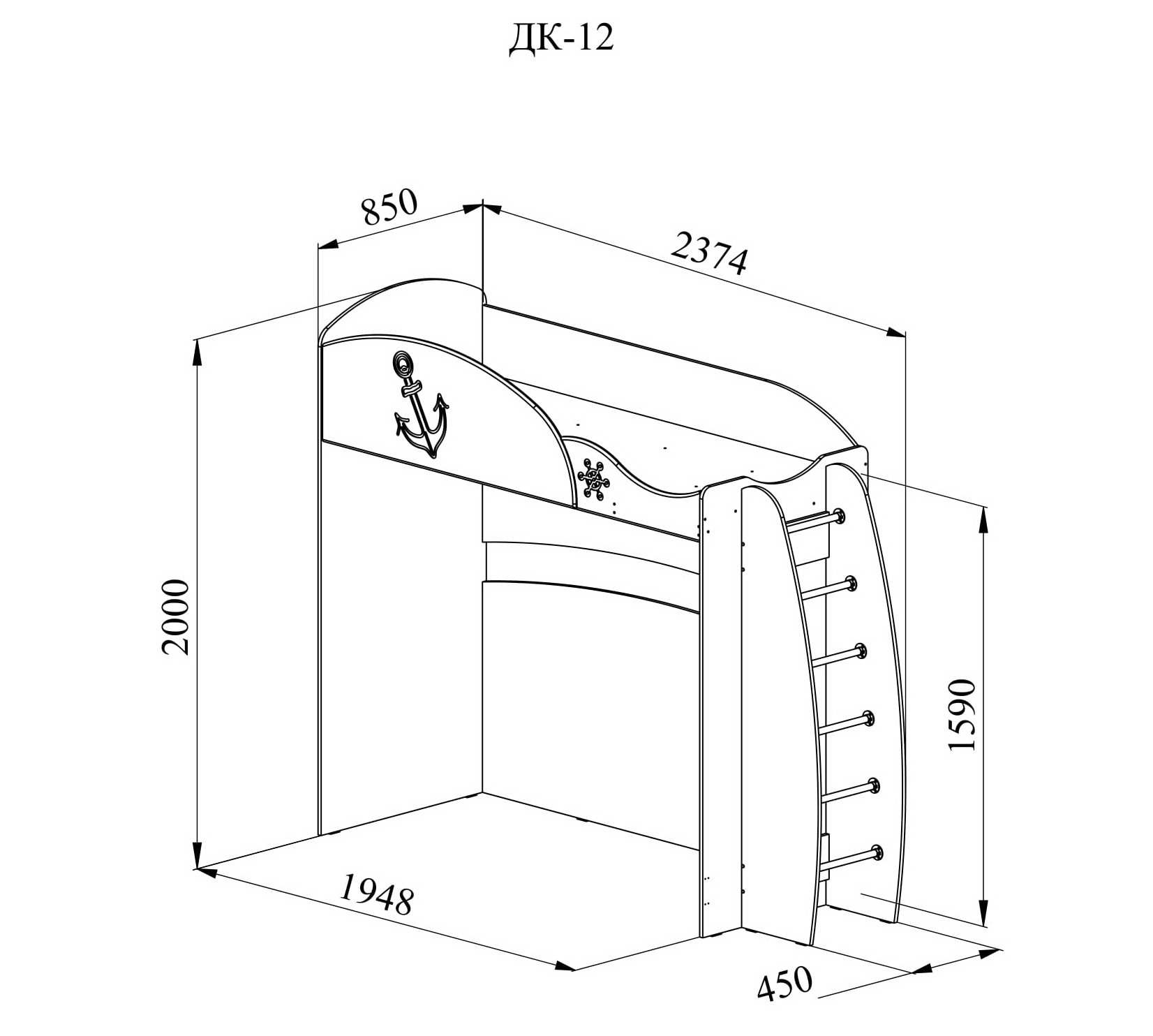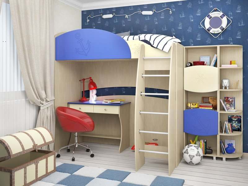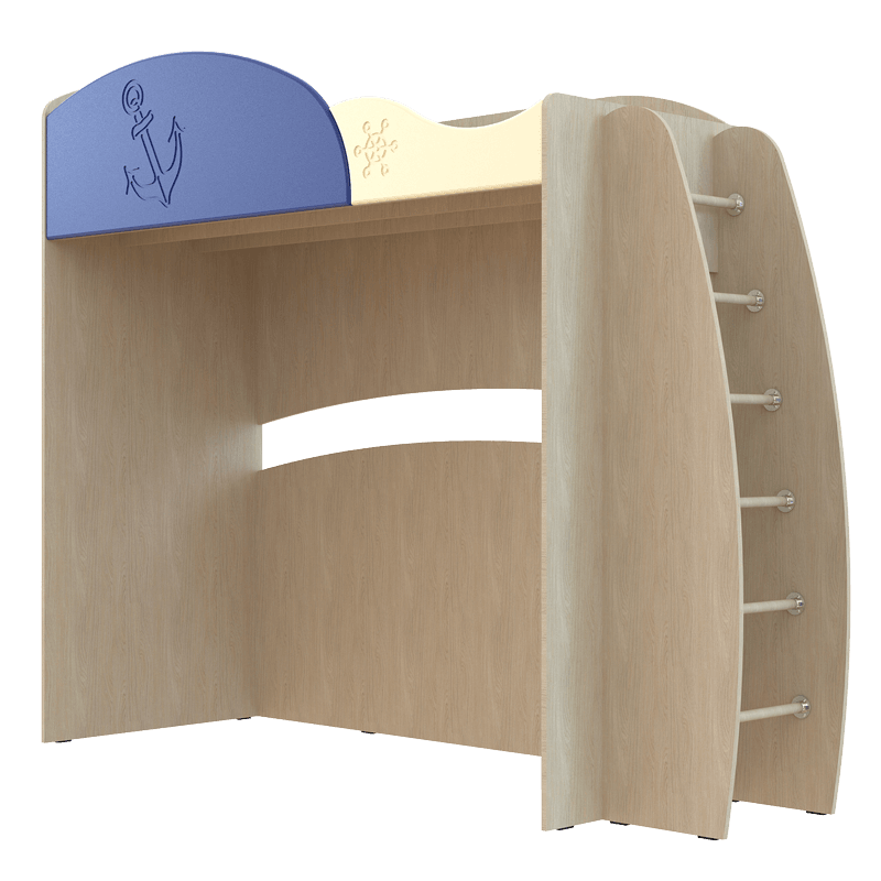 Кровать «Капитошка» ДК-12К Береза снежная/синий-ваниль