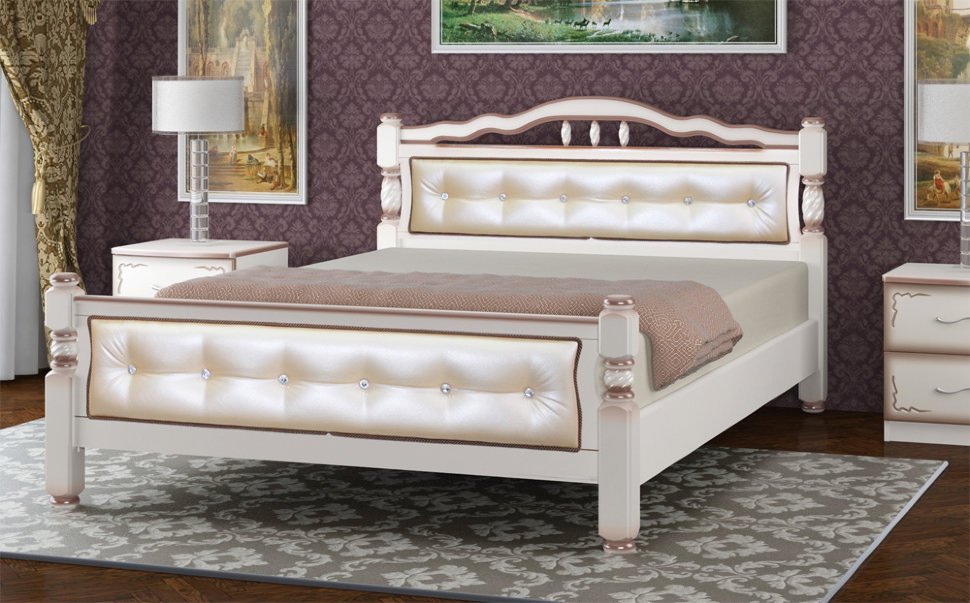 Кровать «Карина-11» Дуб молочный, светлая кожа