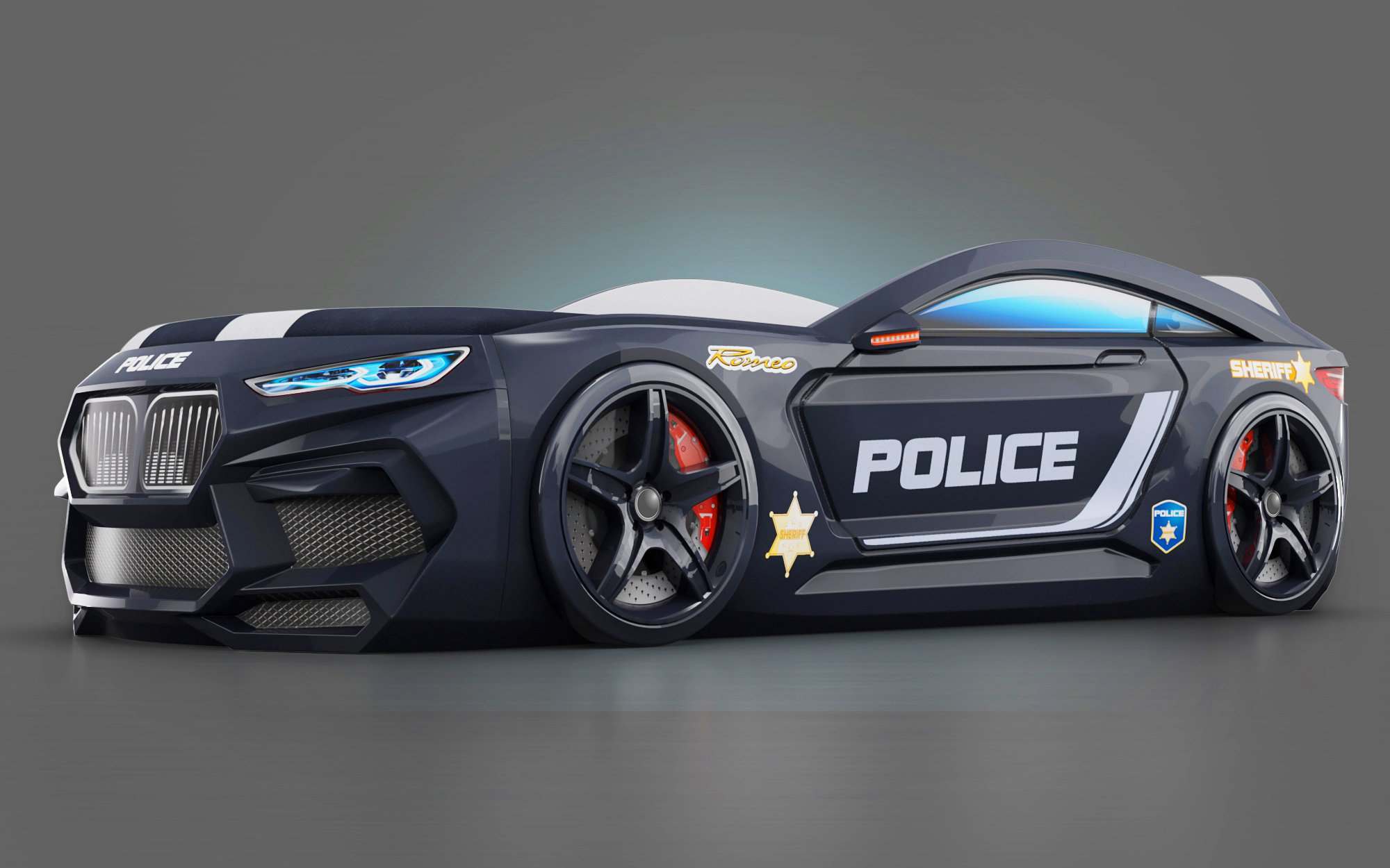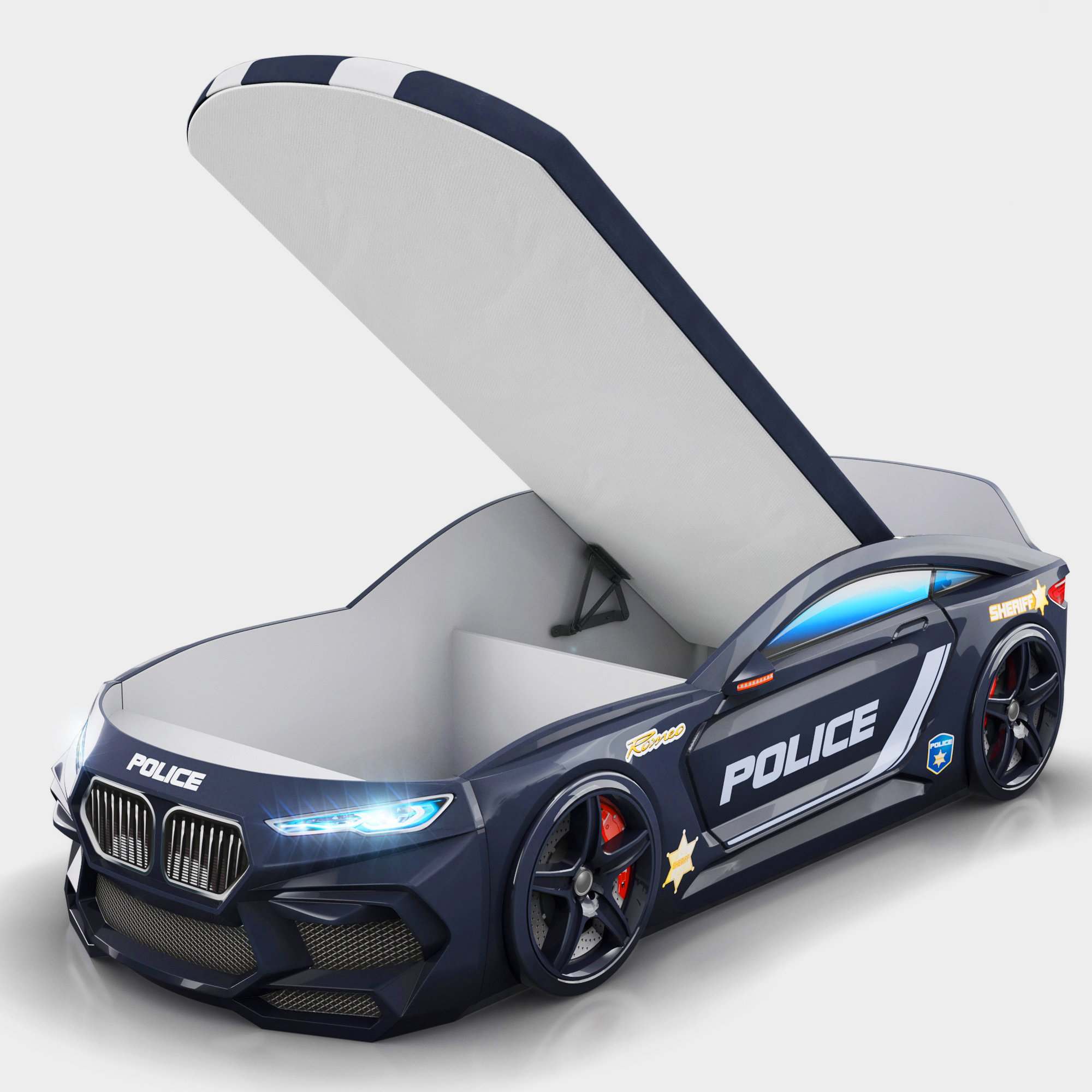Кровать-машинка с подъемным механизмом «Romeo-М» Полиция черный