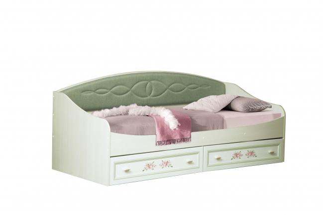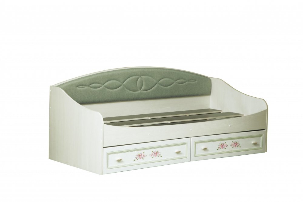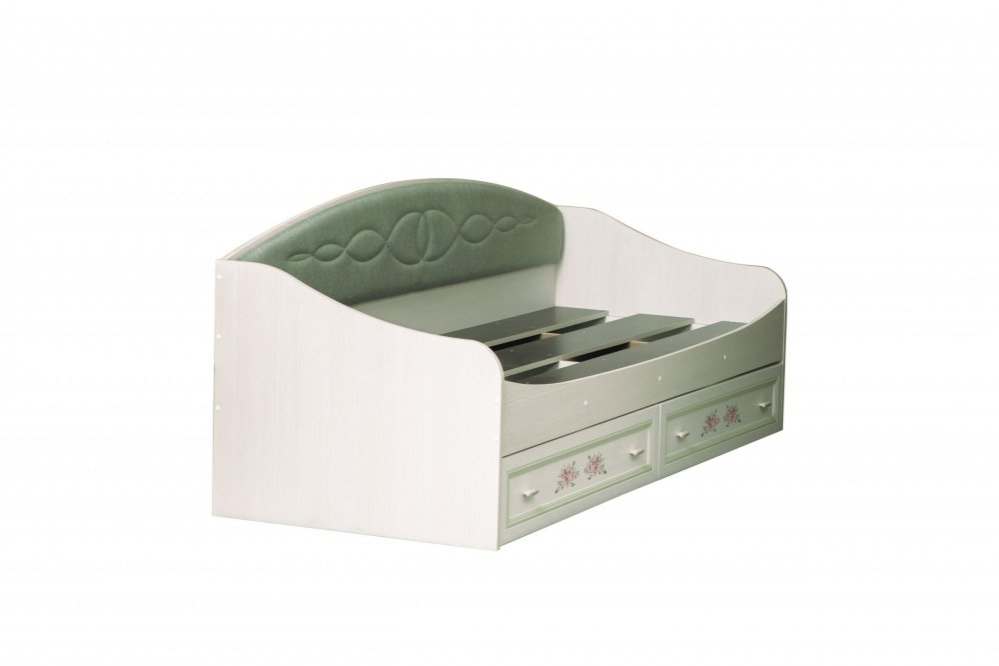 Кровать односпальная с ящиками «Флоренция-14» Вудлайн кремовый/Аруша венге патина фисташка