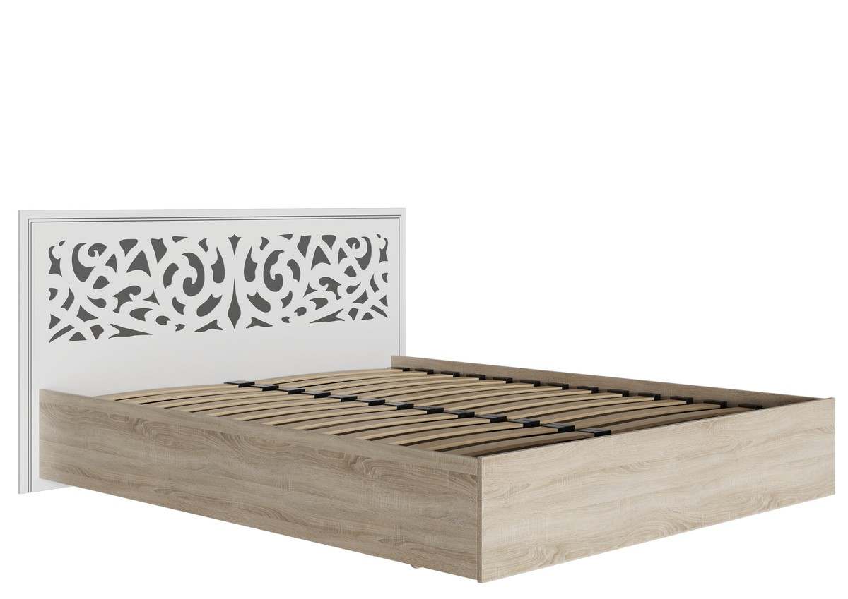 Кровать с ортопедическим основанием 160 «Мадлен» Дуб Сонома светлый/МДФ Ясень белый эмаль матовый