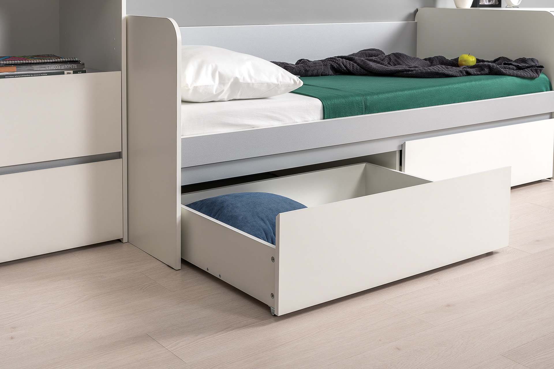 Кровать с ящиками 11.39 «Торонто» Белый/Стальной серый