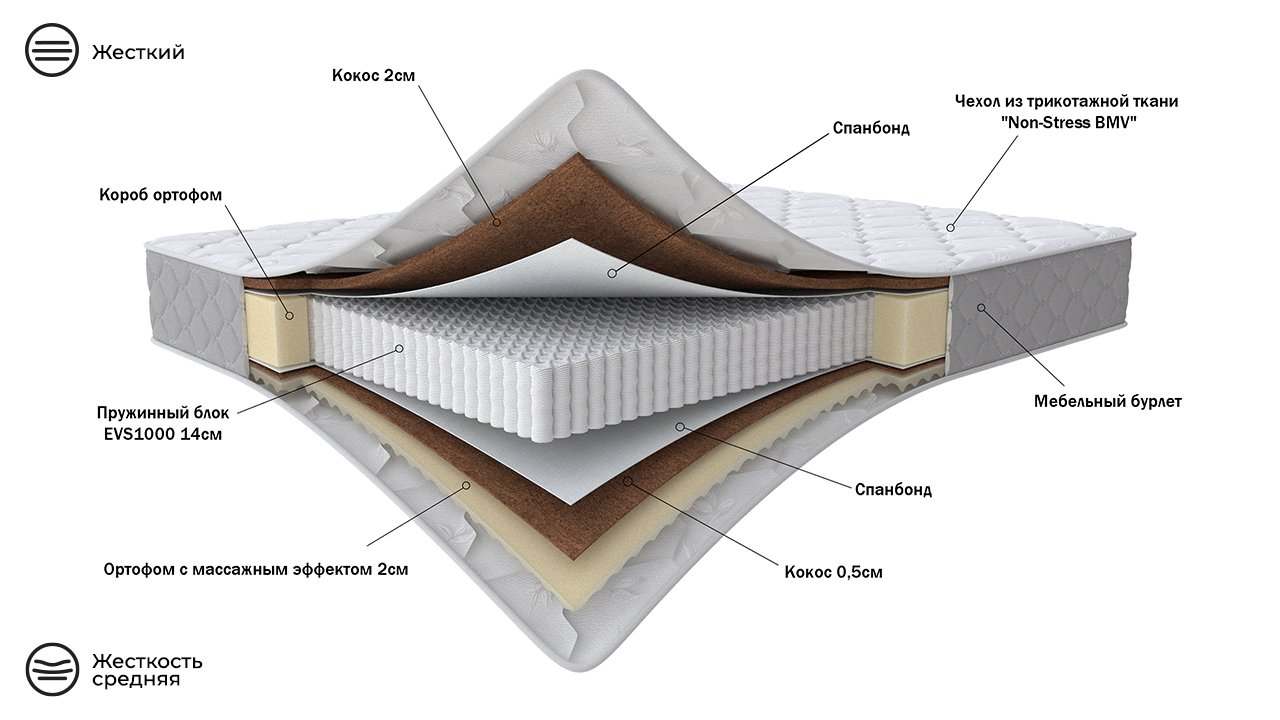 | Жесткость | Средняя, Средняя-Жесткая |