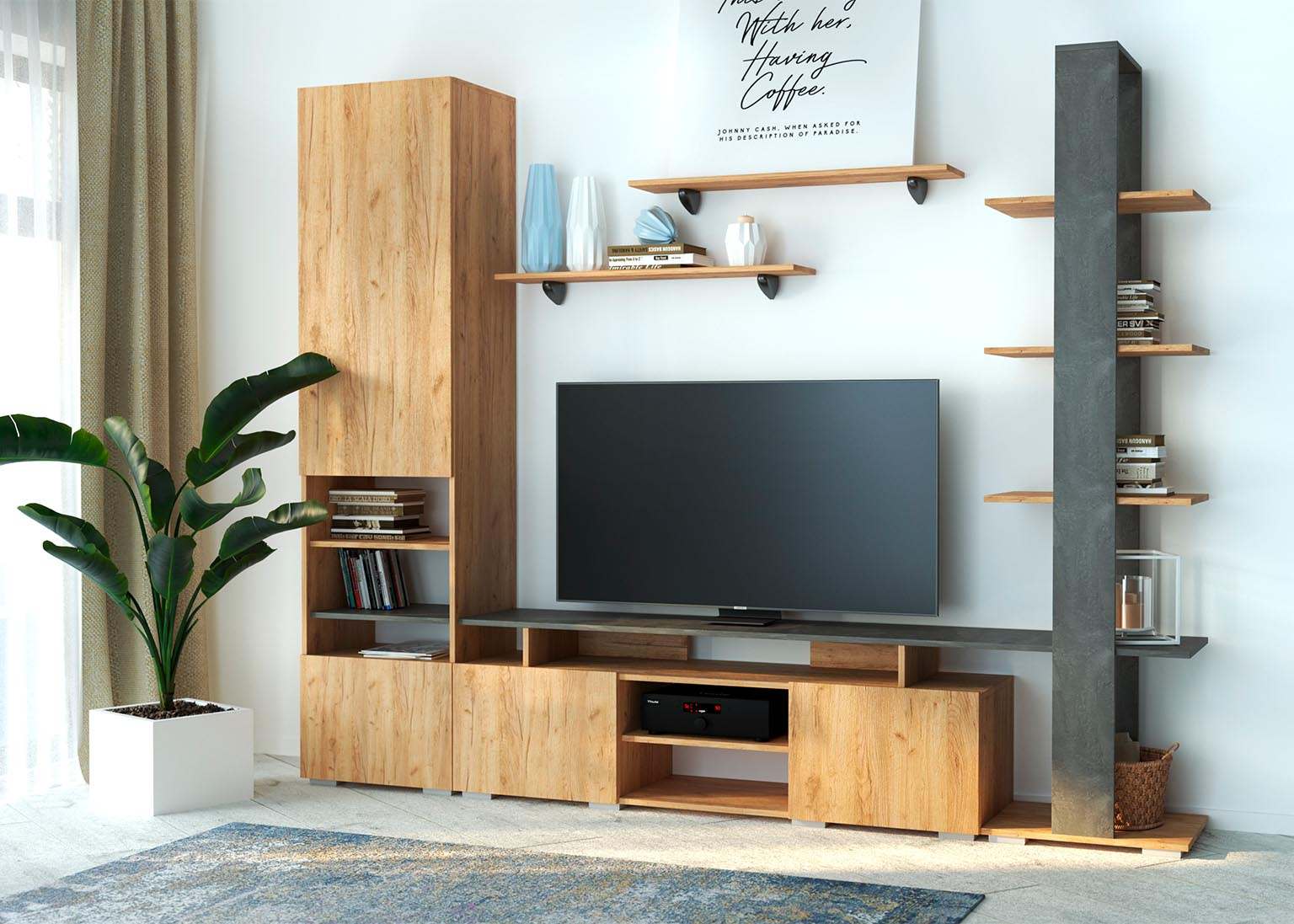 Мебель для гостиной «МГС 2» Дуб золотой/Камень тёмный