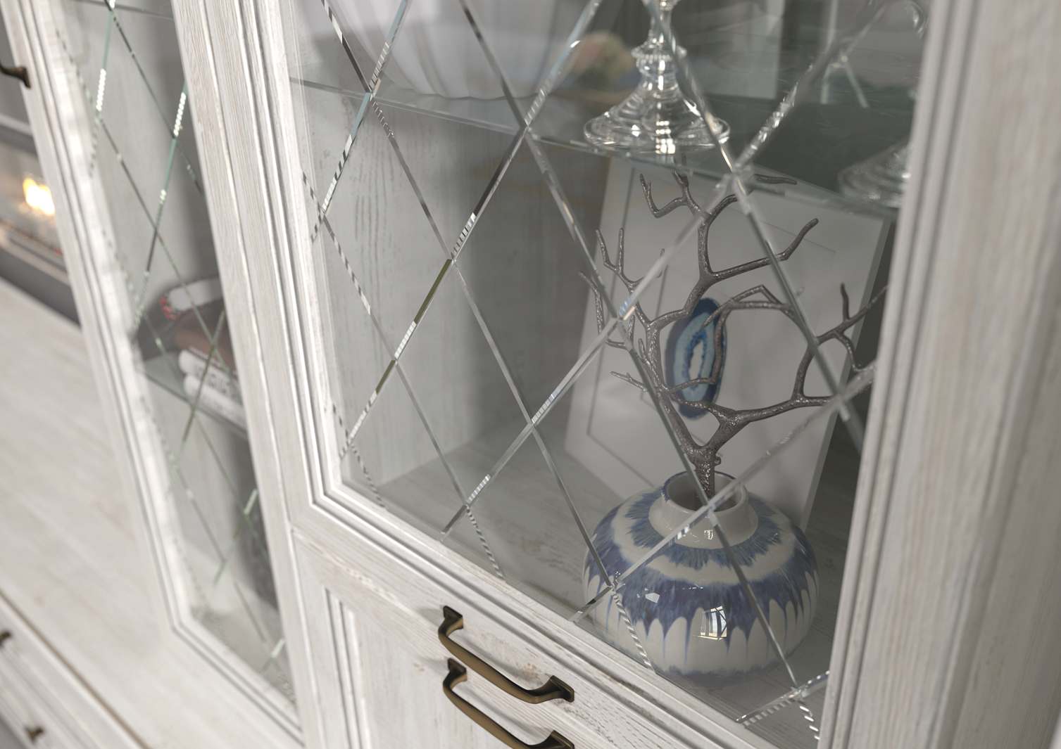 Шкаф-витрина ШК-117 «Александрия» Сосна Санторини Светлая