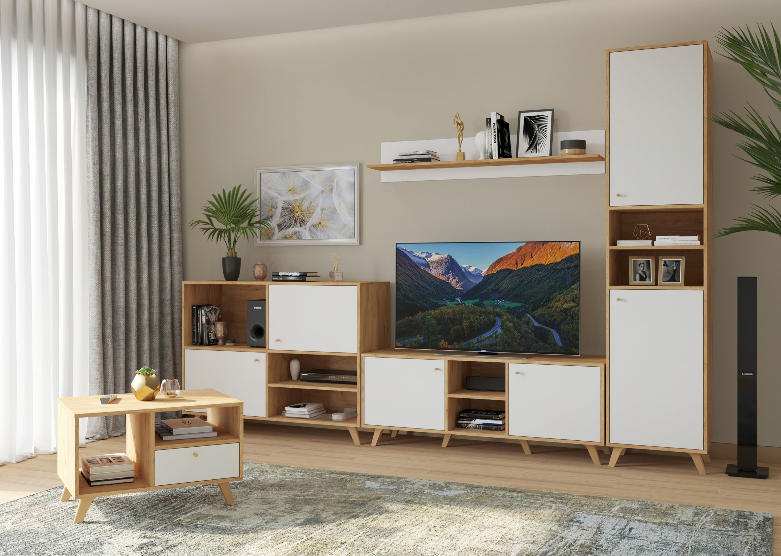 Модульная гостиная «Ирма» Дуб крафт золотой/Белый вариант 2