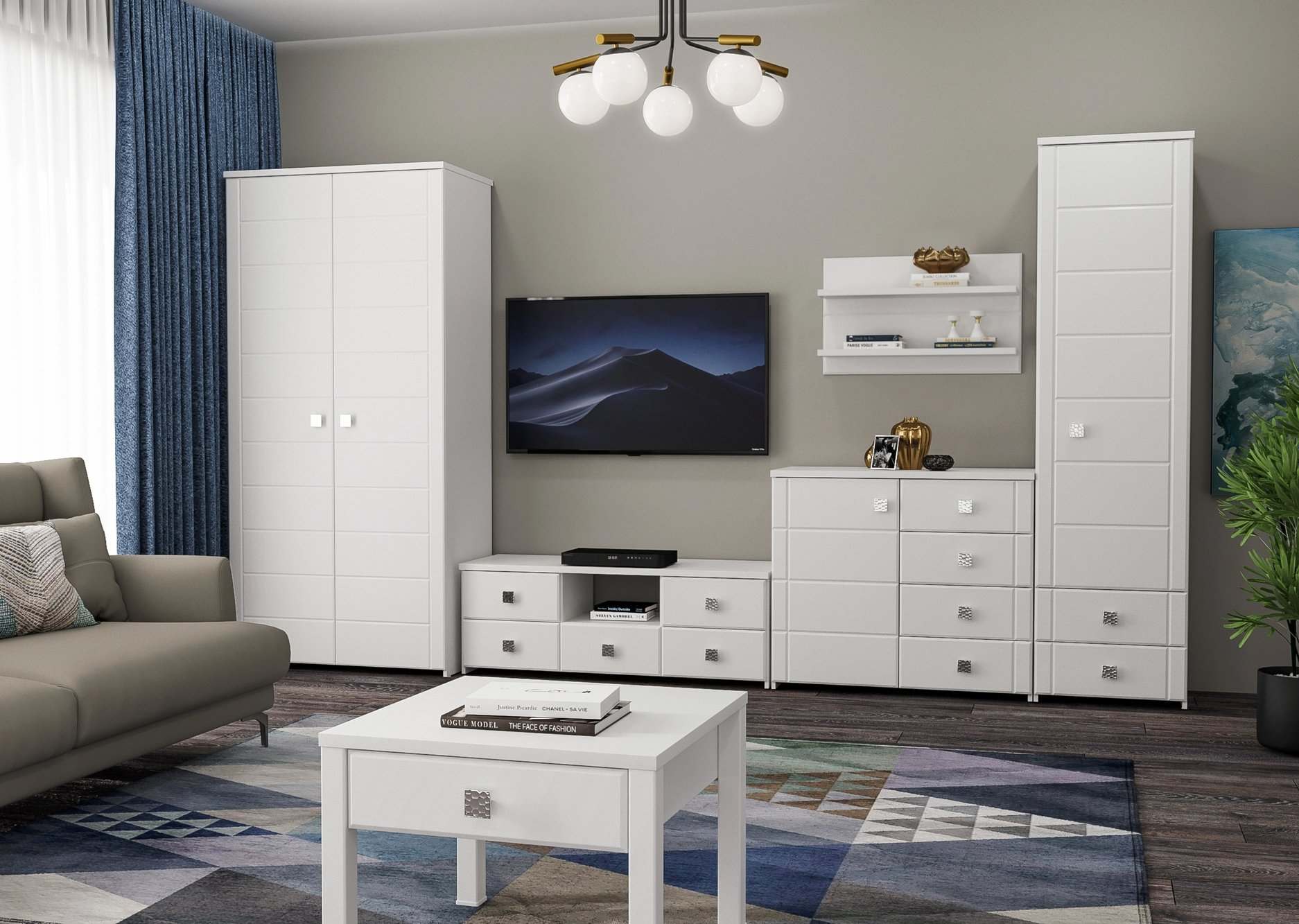 Модульная гостиная «Изабель» Белый структурный/Белое дерево