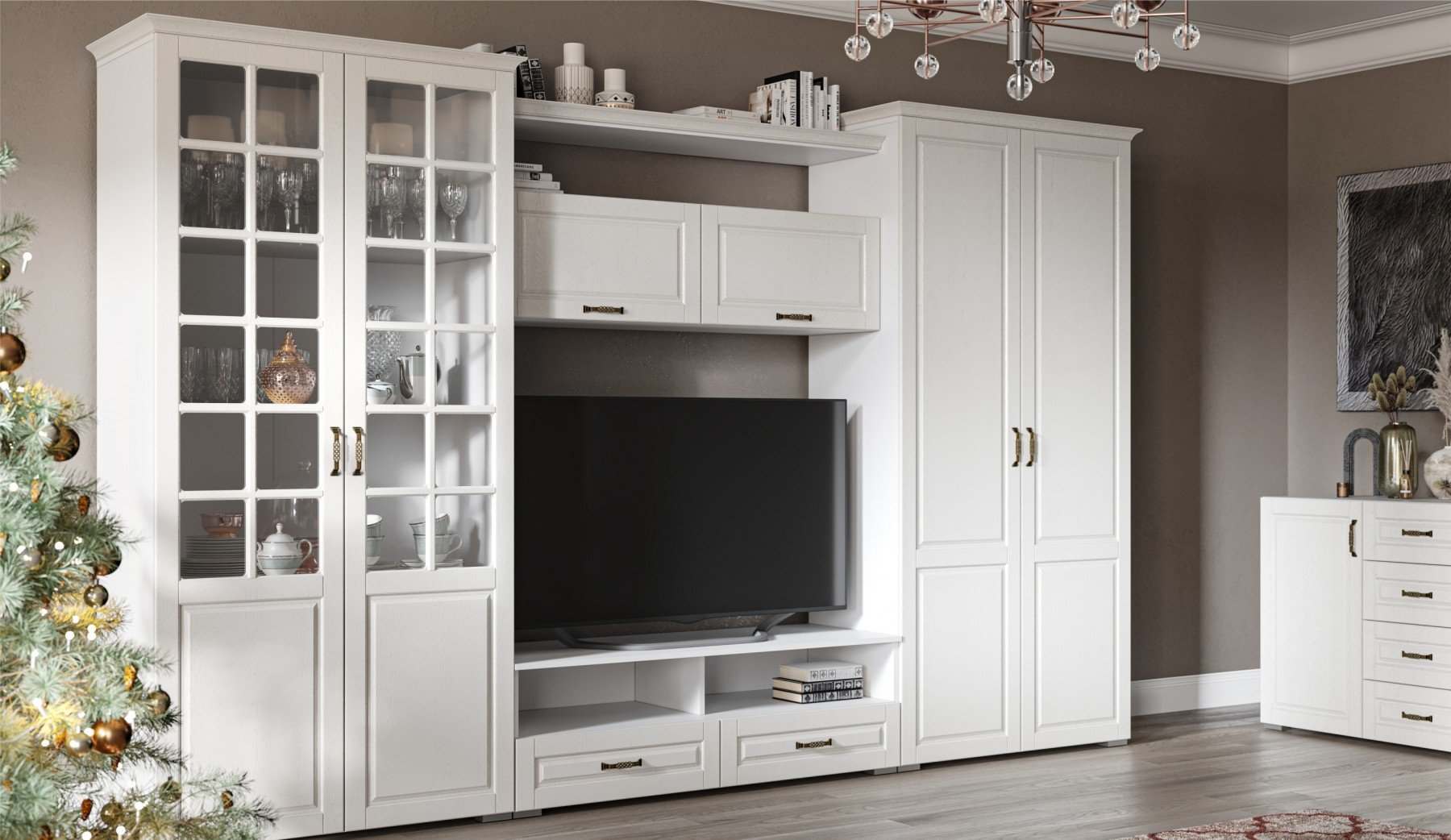 Модульная гостиная «Лацио» Белый/МДФ Белое дерево вариант 2