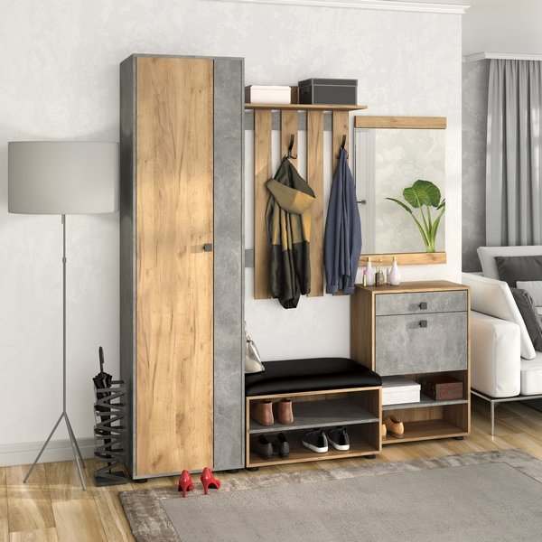 Модульная прихожая «Мини-Лайт» Дуб крафт золотой/Ателье светлое вариант 6