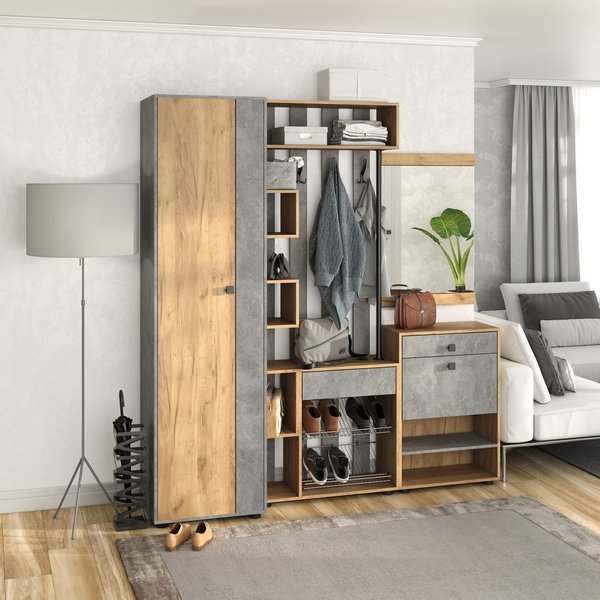 Модульная прихожая «Мини-Лайт» Дуб крафт золотой/Ателье светлое вариант 7