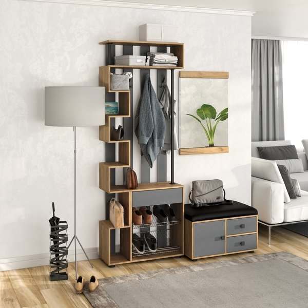 Модульная прихожая «Мини-Лайт» Дуб крафт золотой/Графит вариант 1