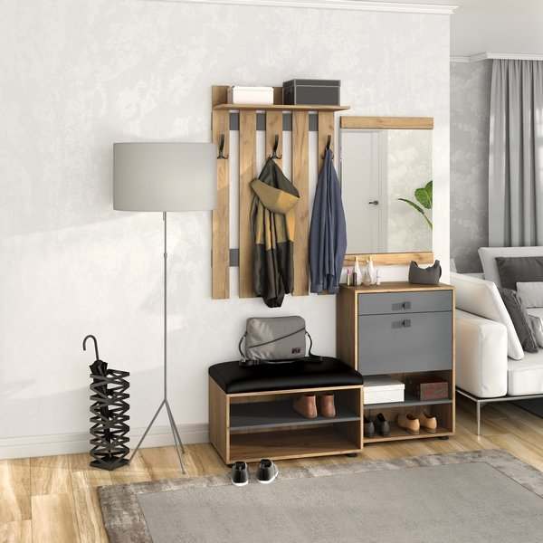 Модульная прихожая «Мини-Лайт» Дуб крафт золотой/Графит вариант 5