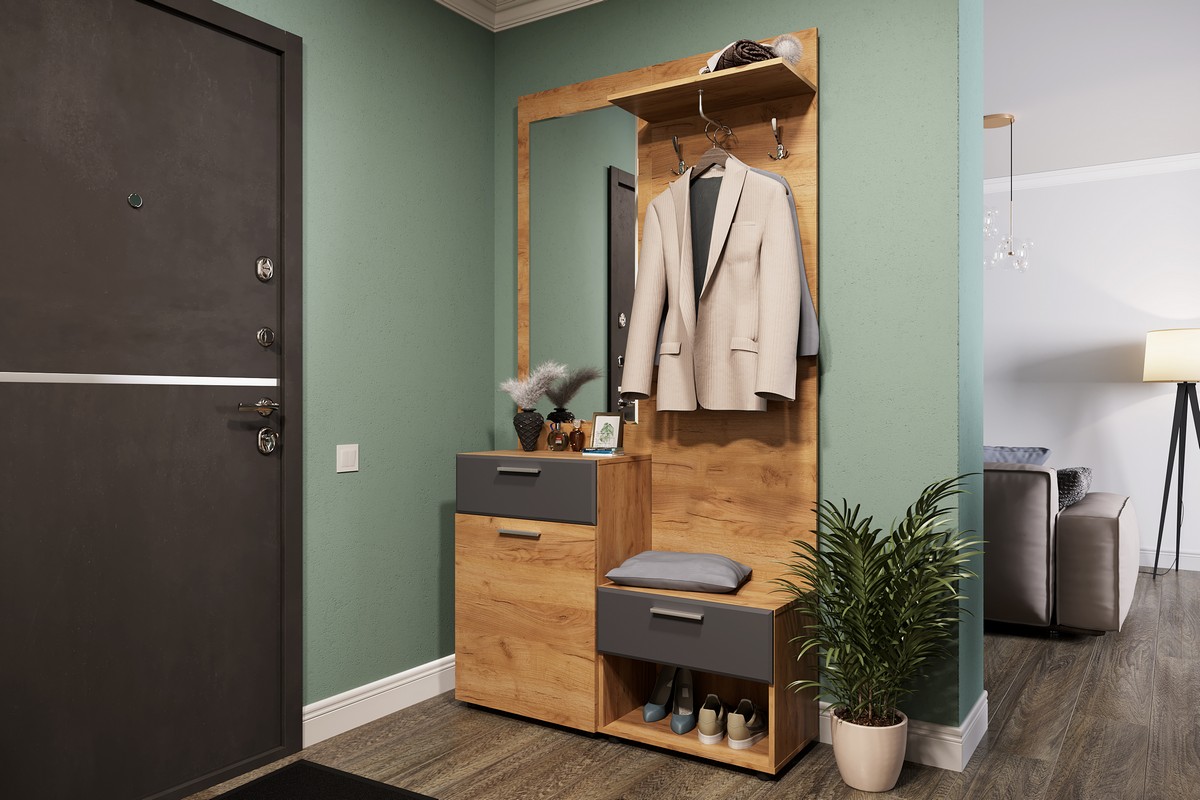 Модульная прихожая «Сафари» Дуб Крафт золотой/МДФ Графит Софт матовый вариант 2