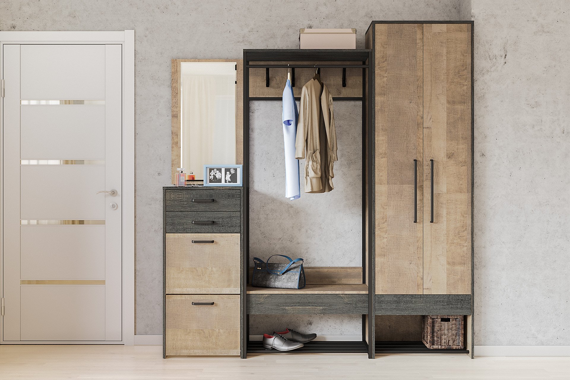 Модульная прихожая «Трувор» Дуб Гранж Песочный/Кромка Интра