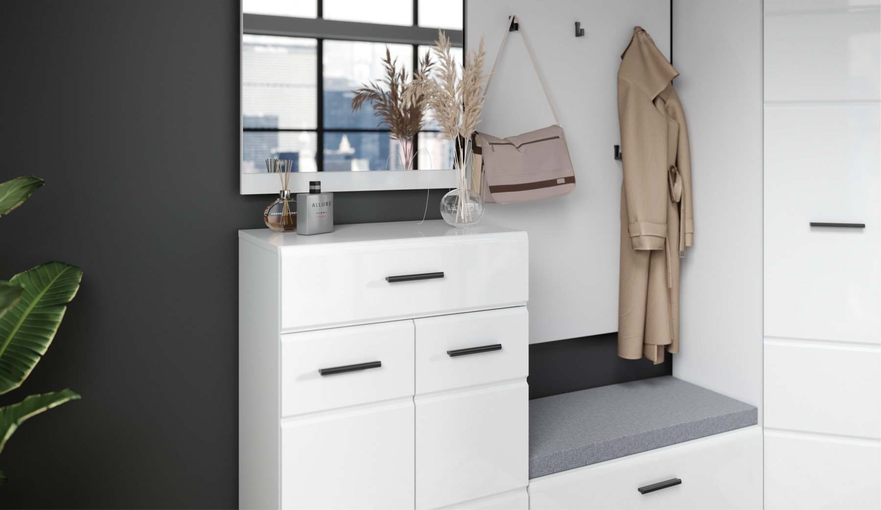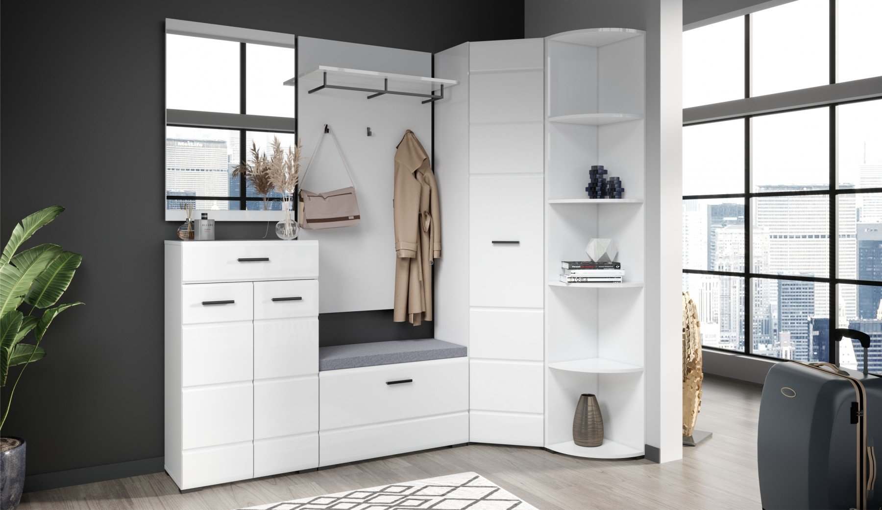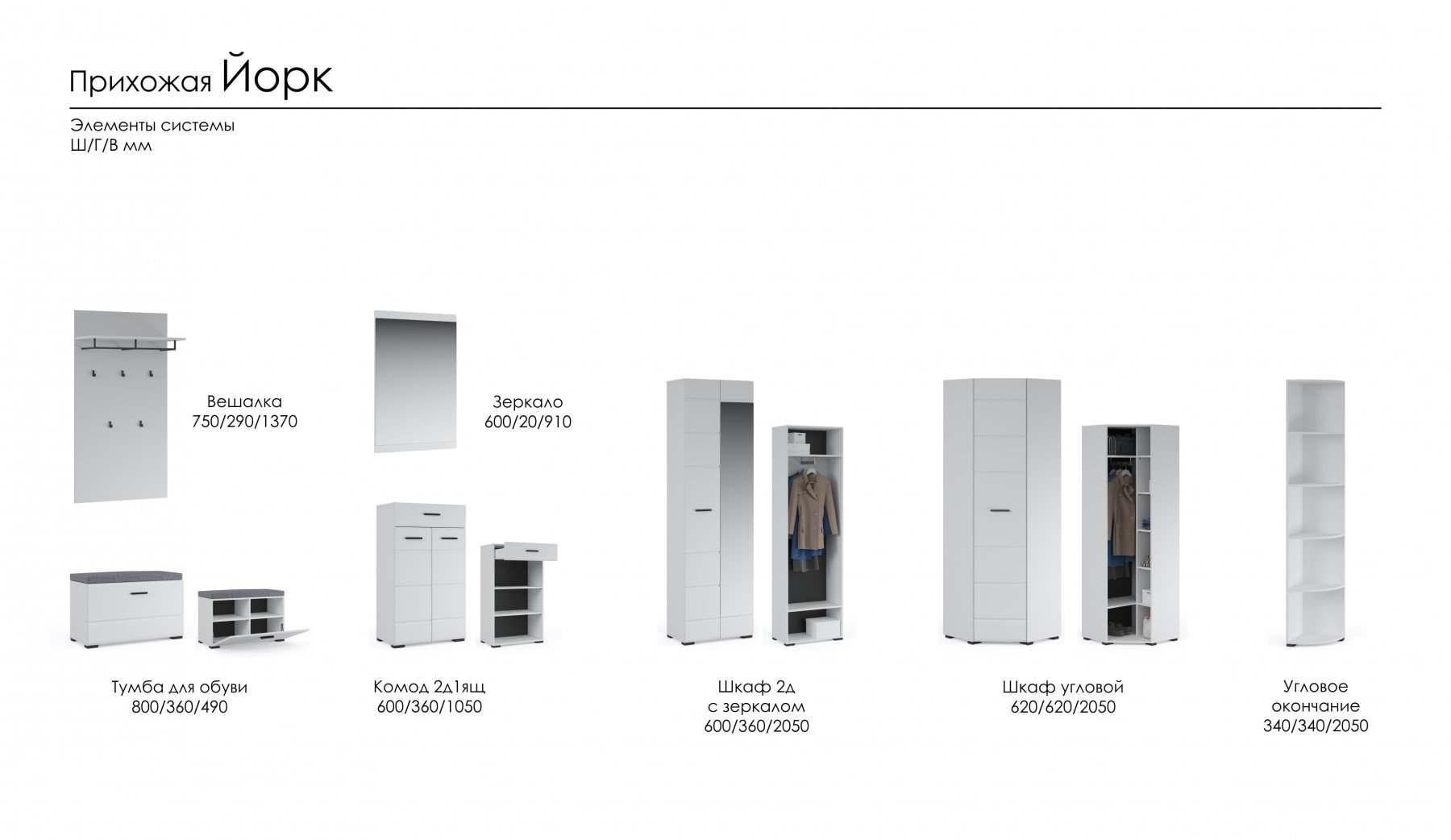 Модульная прихожая «Йорк» Белый жемчуг/МДФ Белый глянец вариант2