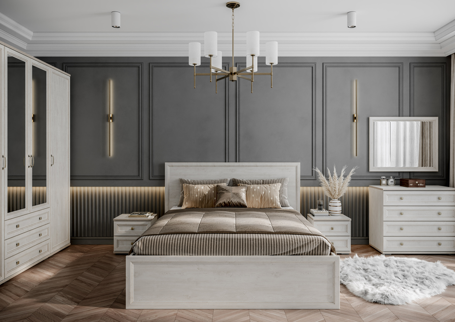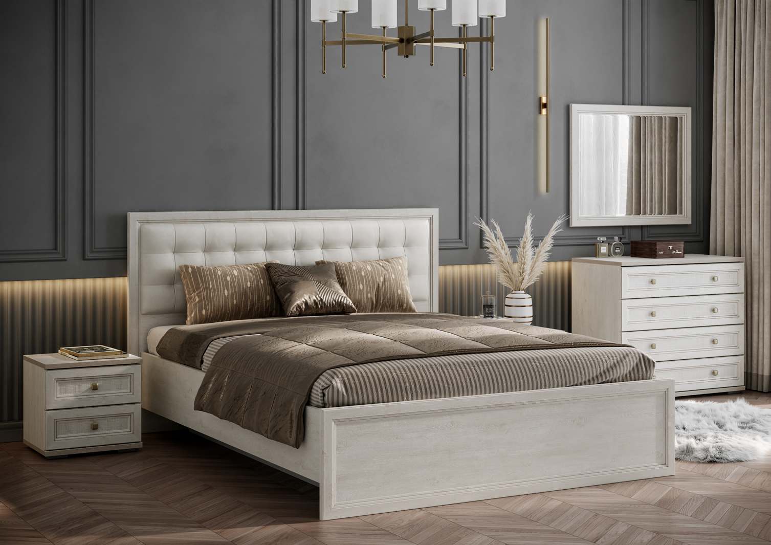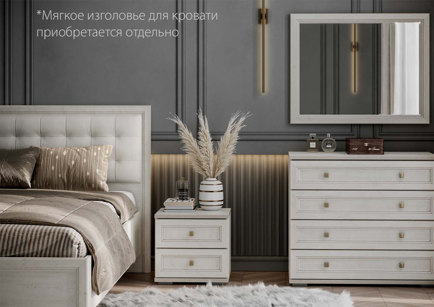 | Комплектация | С комодом, Со шкафом, С прикроватными тумбочками |