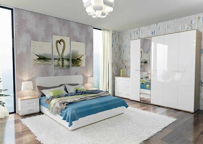 Модульная спальня «Анна MDF» Дуб сонома/МДФ Белый глянец
