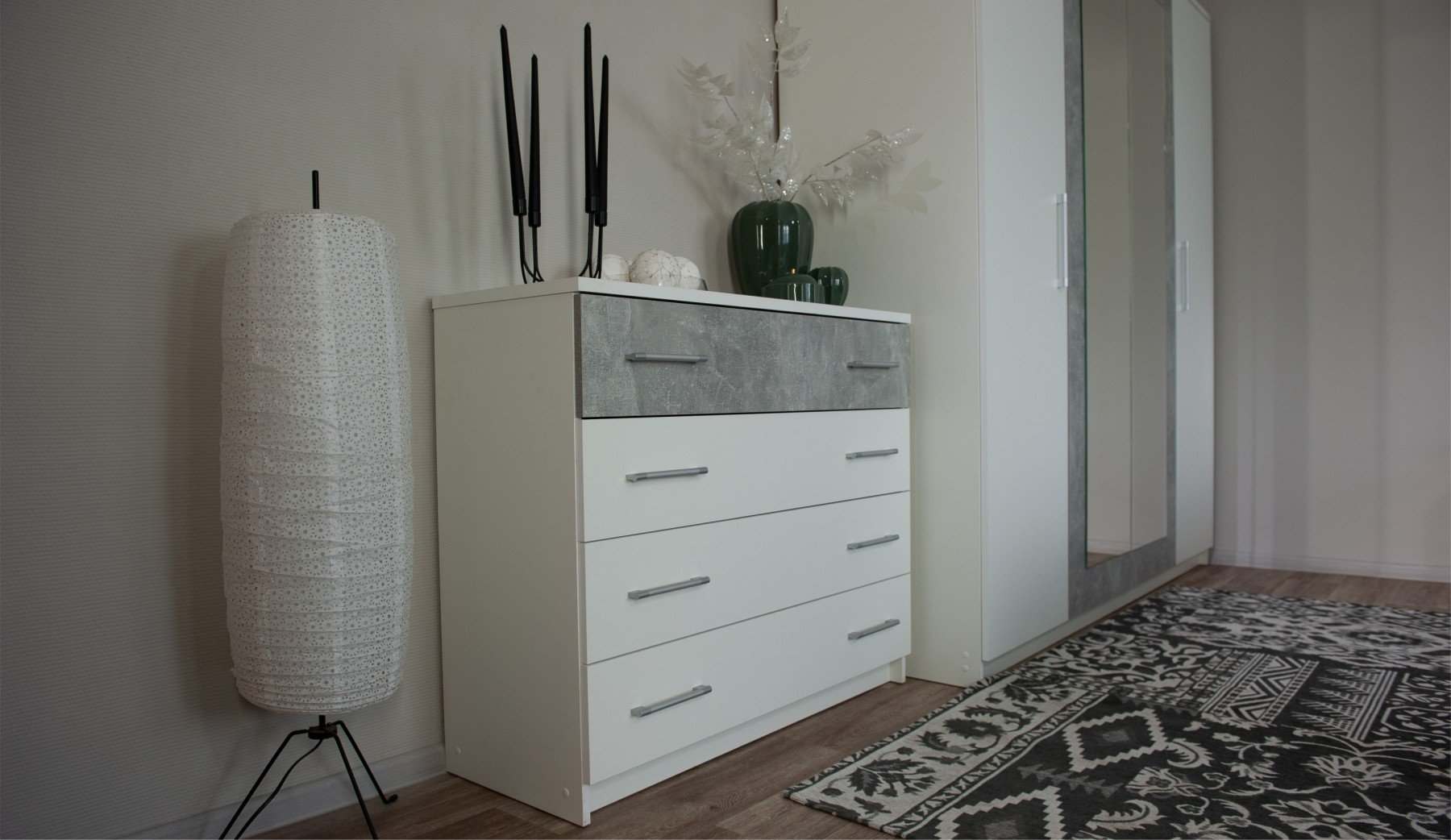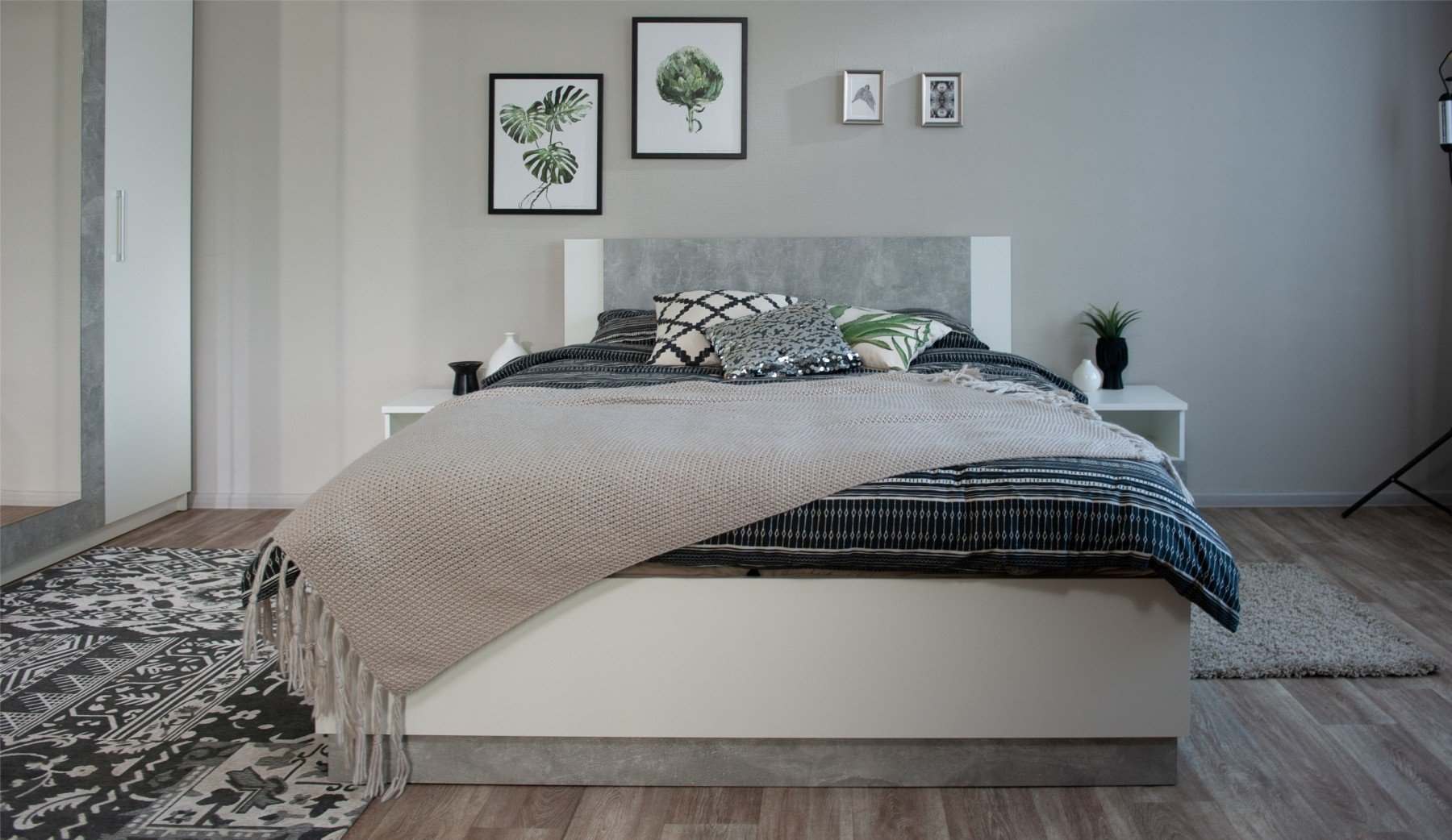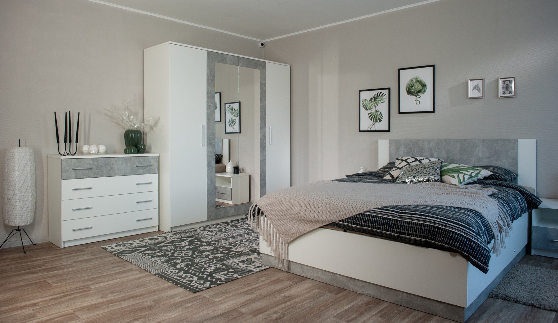 Модульная спальня «Аврора» Белый/Ателье светлый вариант 4