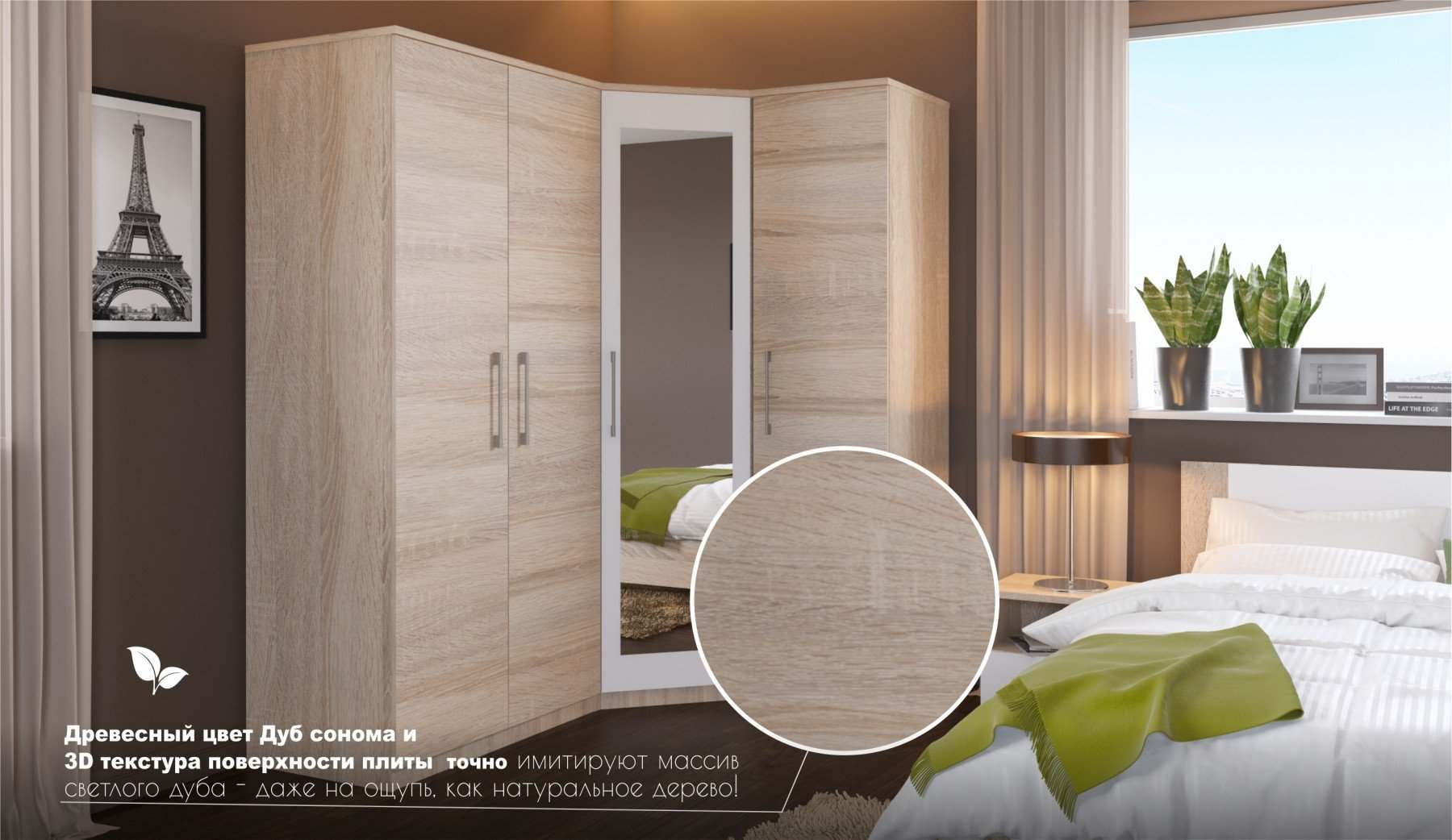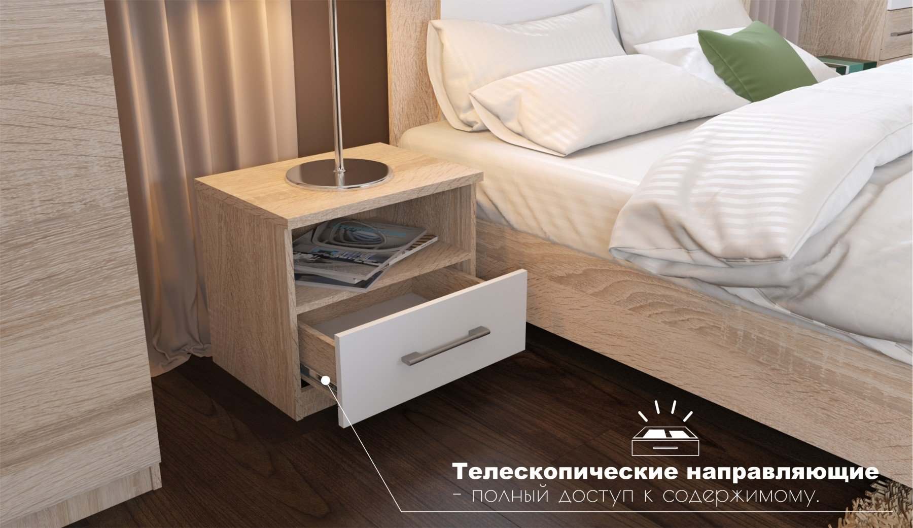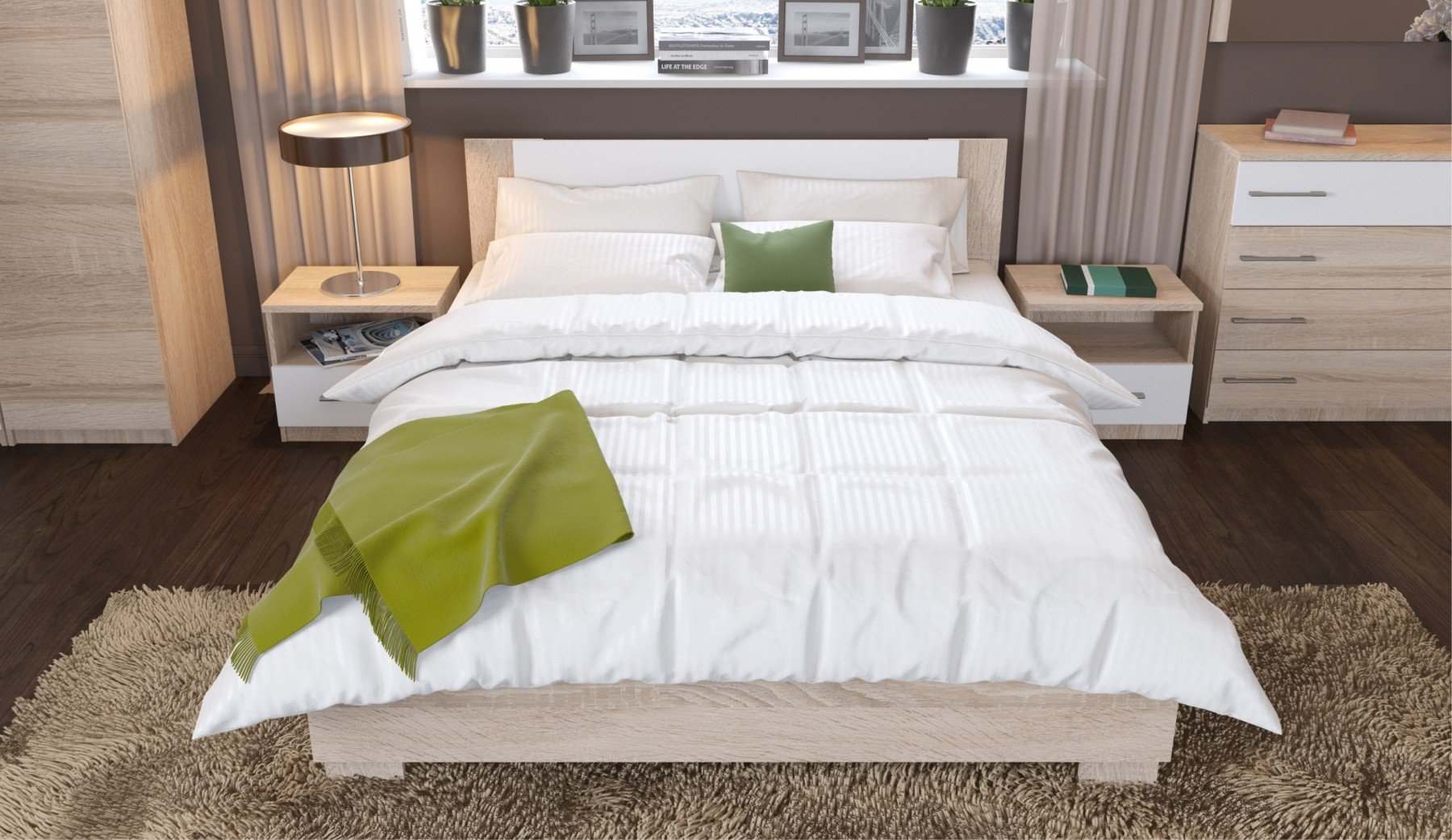 | Комплектация | С комодом, С угловым шкафом, С прикроватными тумбочками |