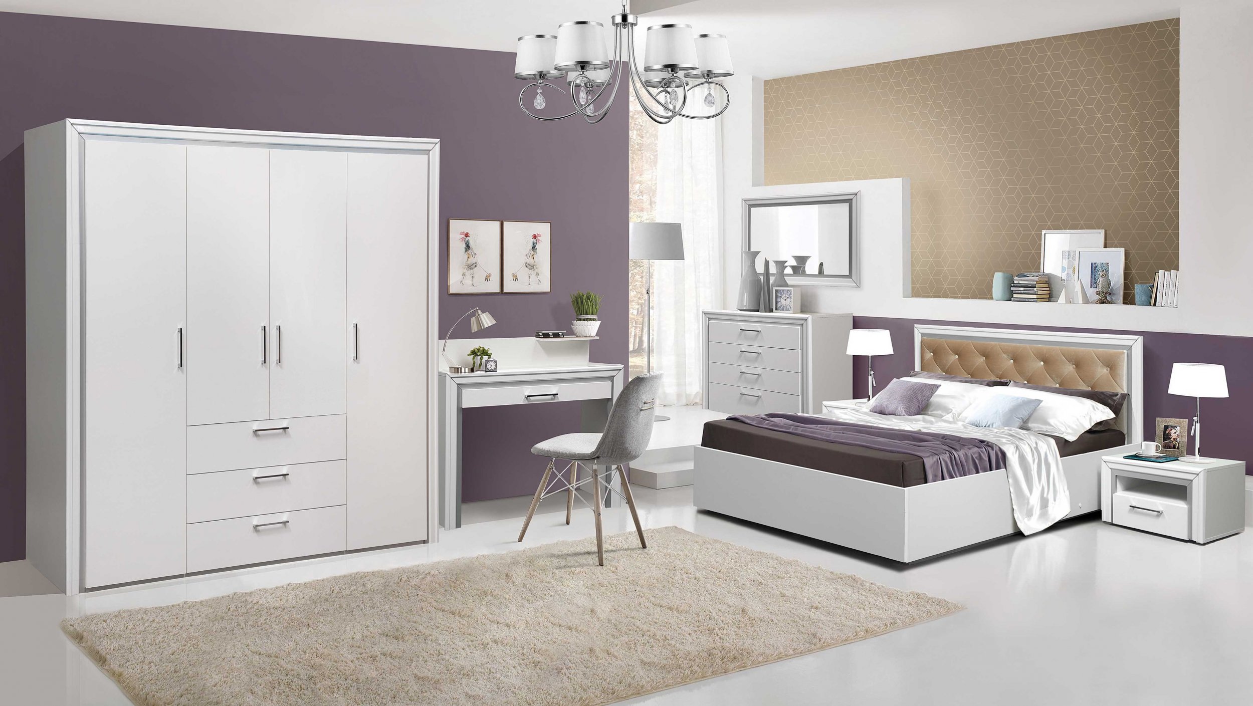 Модульная спальня «Беатрис» Белый/Белый глянец с серебром