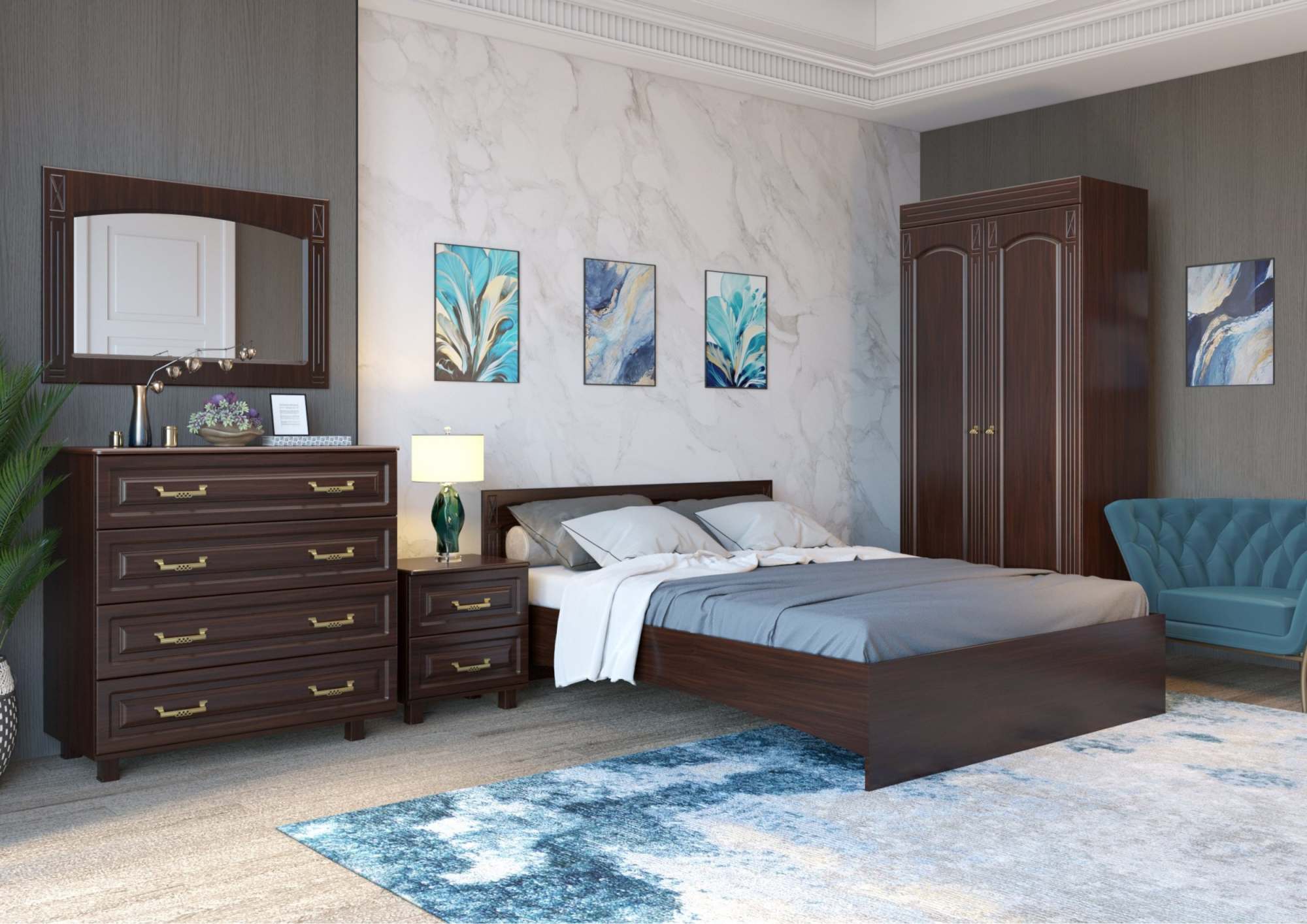Модульная спальня «Элизабет» Орех темный ЭМ-001
