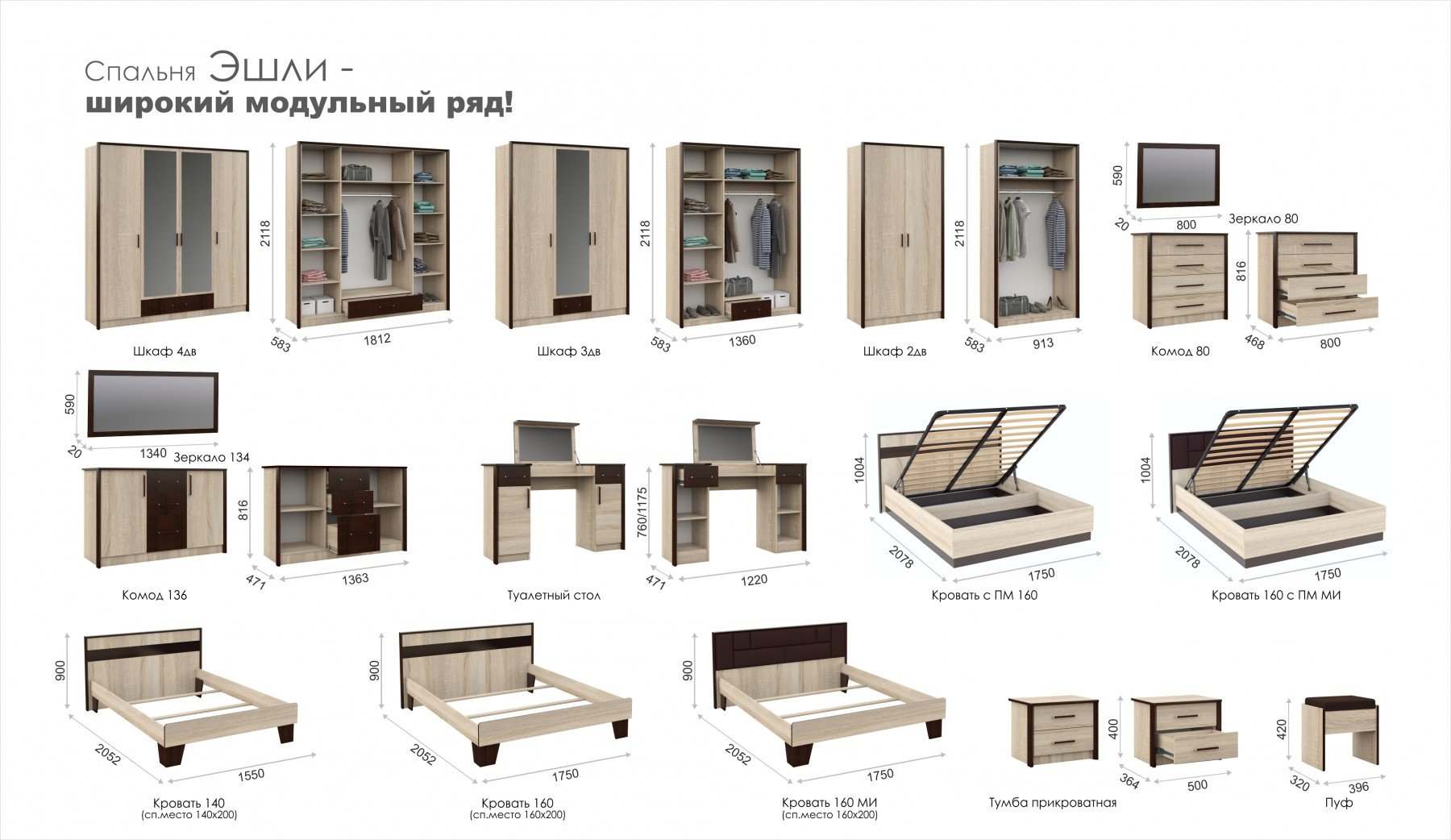 Мы доставим модульная спальня «эшли» венге/дуб сонома вариант 3 по Симферополю. Доставка до склада + доставка по городу от 0 до 1 000₽, в зависимости от объема, количества и веса Вашего заказа. Подробности уточните у менеджеров.