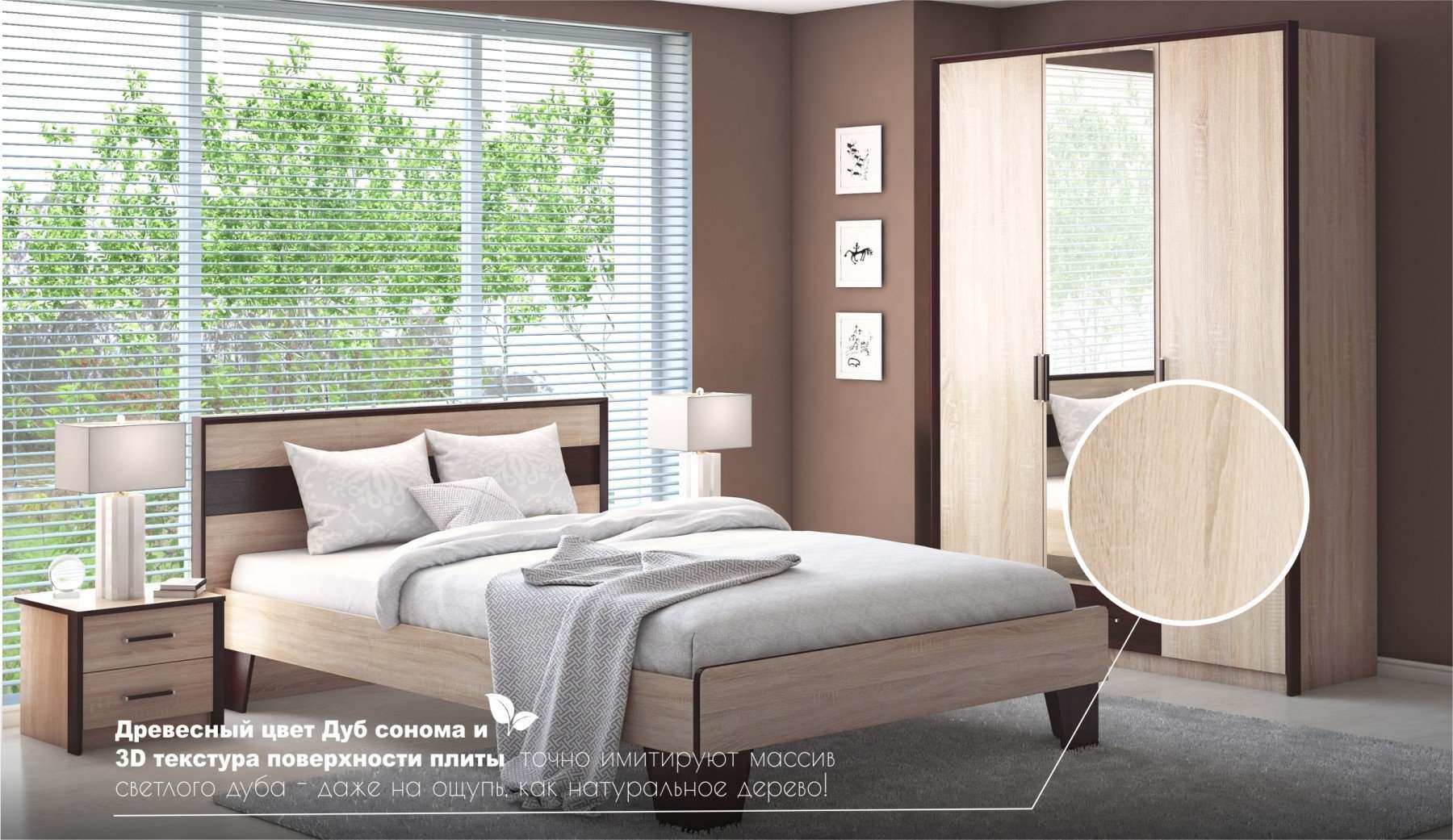 | Комплектация | С комодом, Со шкафом, С прикроватными тумбочками |