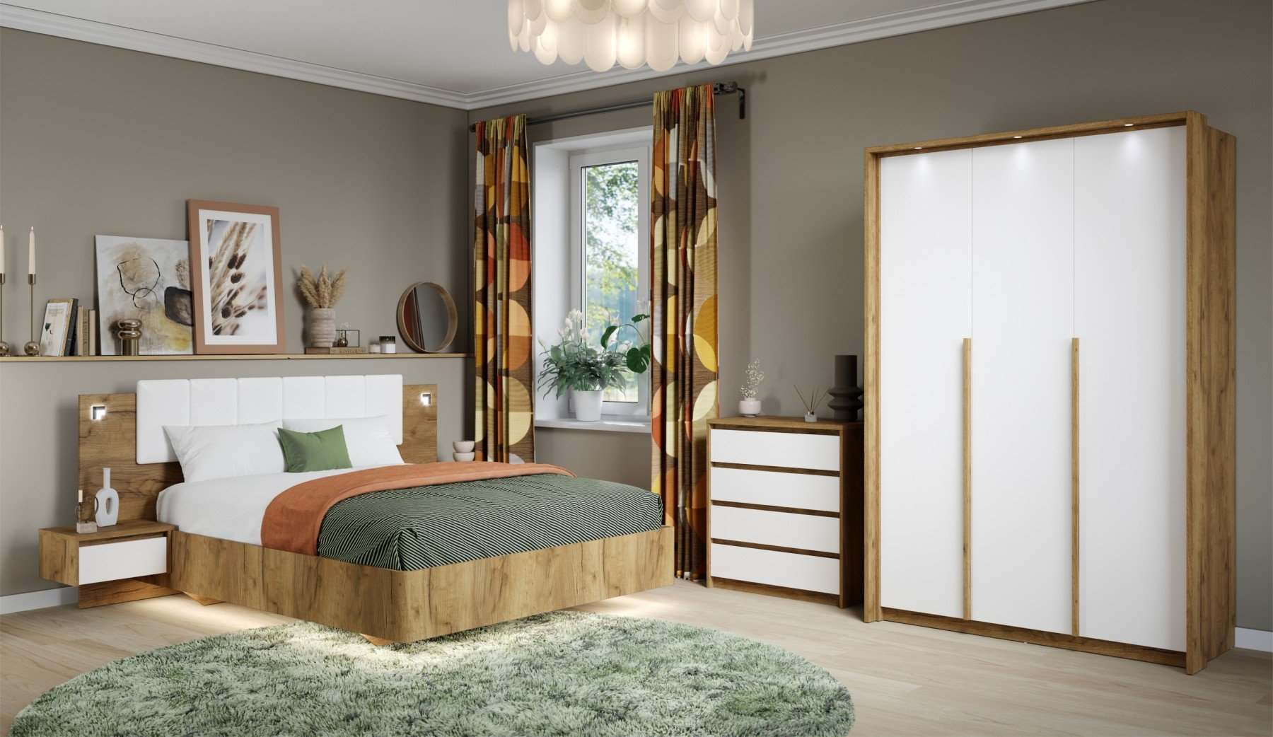 | Комплектация | С комодом, Со шкафом, Для маленькой спальни, С прикроватными тумбочками |