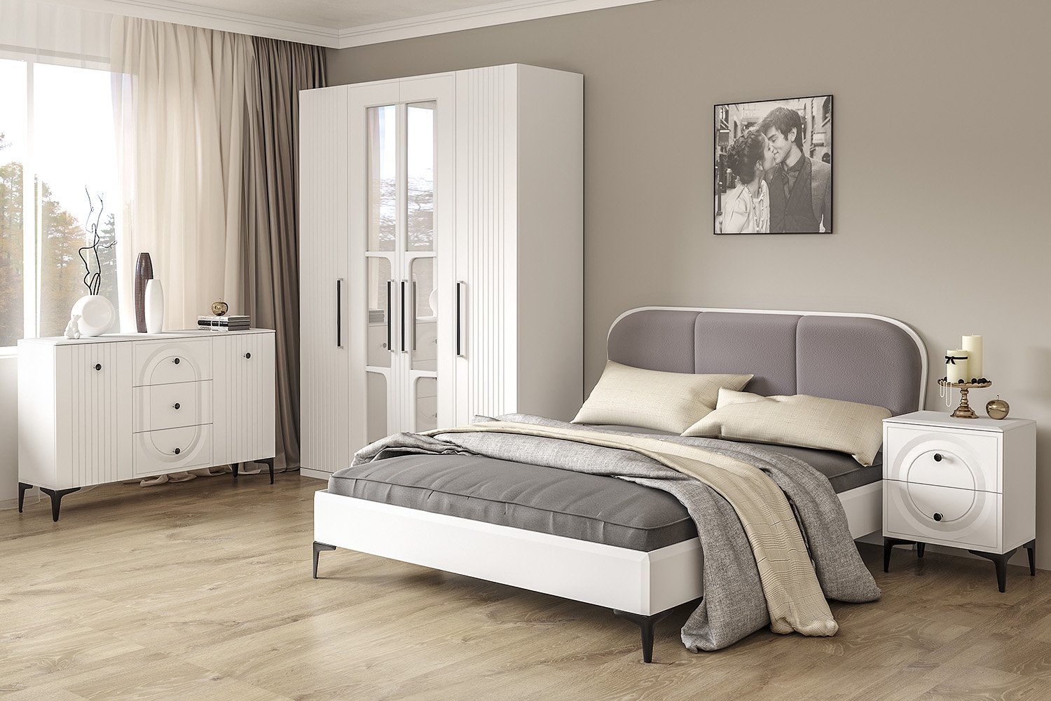 | Комплектация | С комодом, Со шкафом, С прикроватными тумбочками |