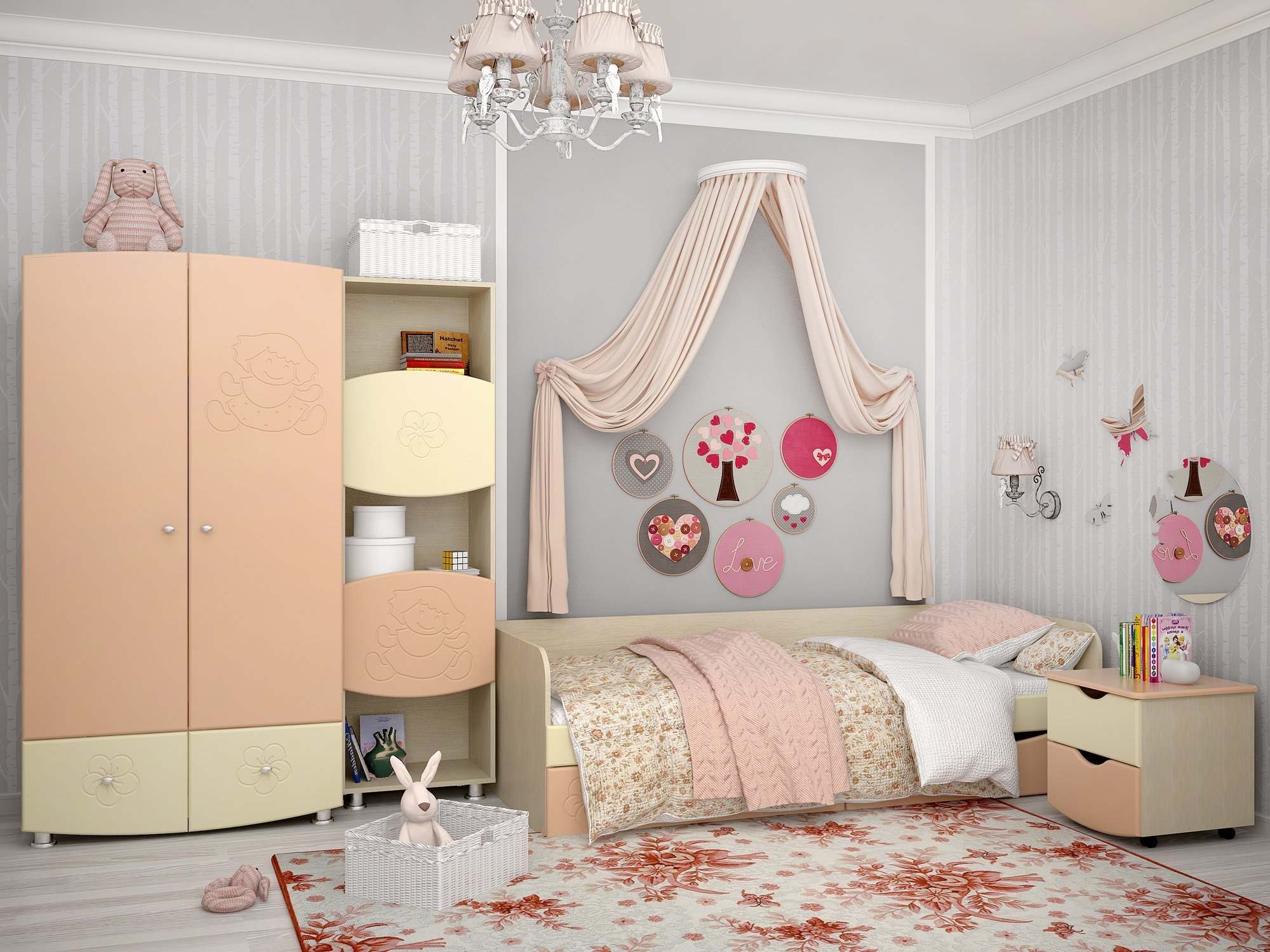 Модульная детская «Капитошка» Береза снежная/абрикос-ваниль