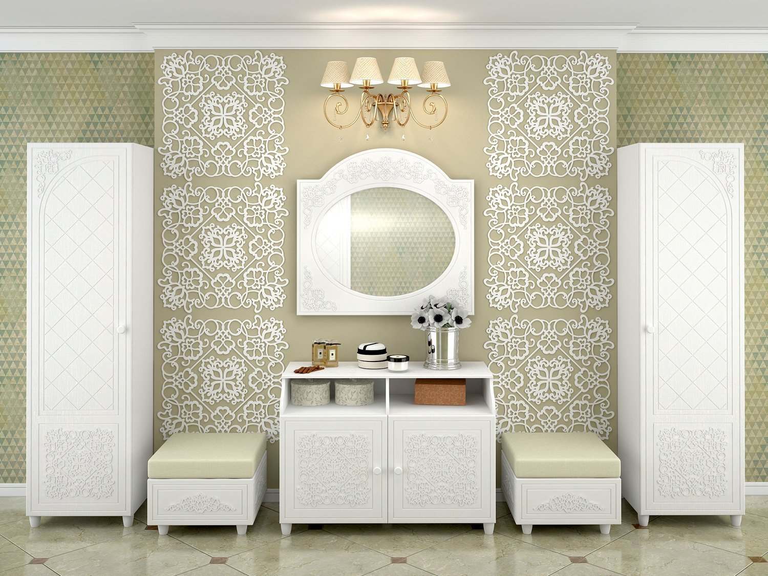 Модульная прихожая «Соня Премиум» Белый структурный/ясень патина вариант 3