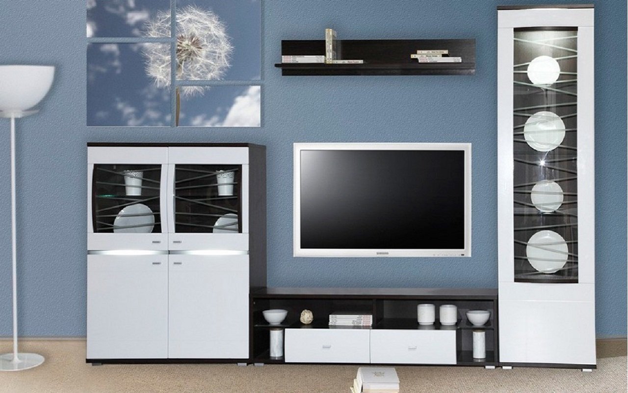 Модульная стенка «Алабама» вариант 5 Венге белый глянец