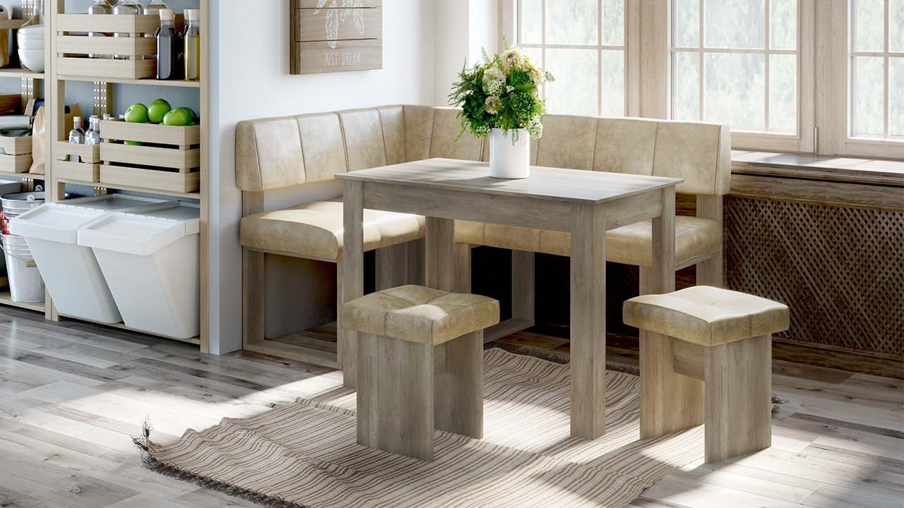 Модульный кухонный уголок «Мадрид» (Дуб Каньон светлый/ткань Richie Caramel)