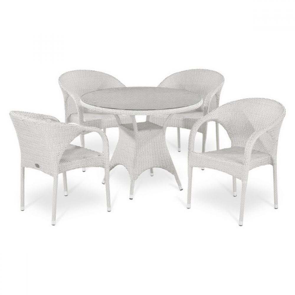 Обеденный комплект плетеной мебели «T220CW» Y290W-W2 White 4Pcs