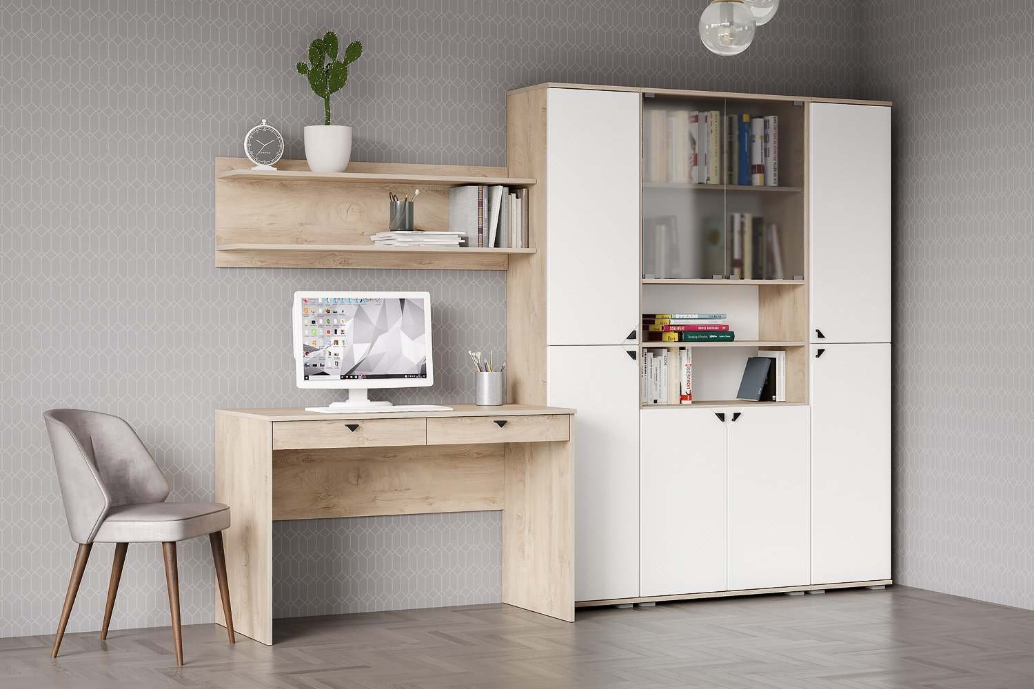«Домашний офис «Бостон» Дуб Эндгрейн/Милк Рикамо софт вариант 2»