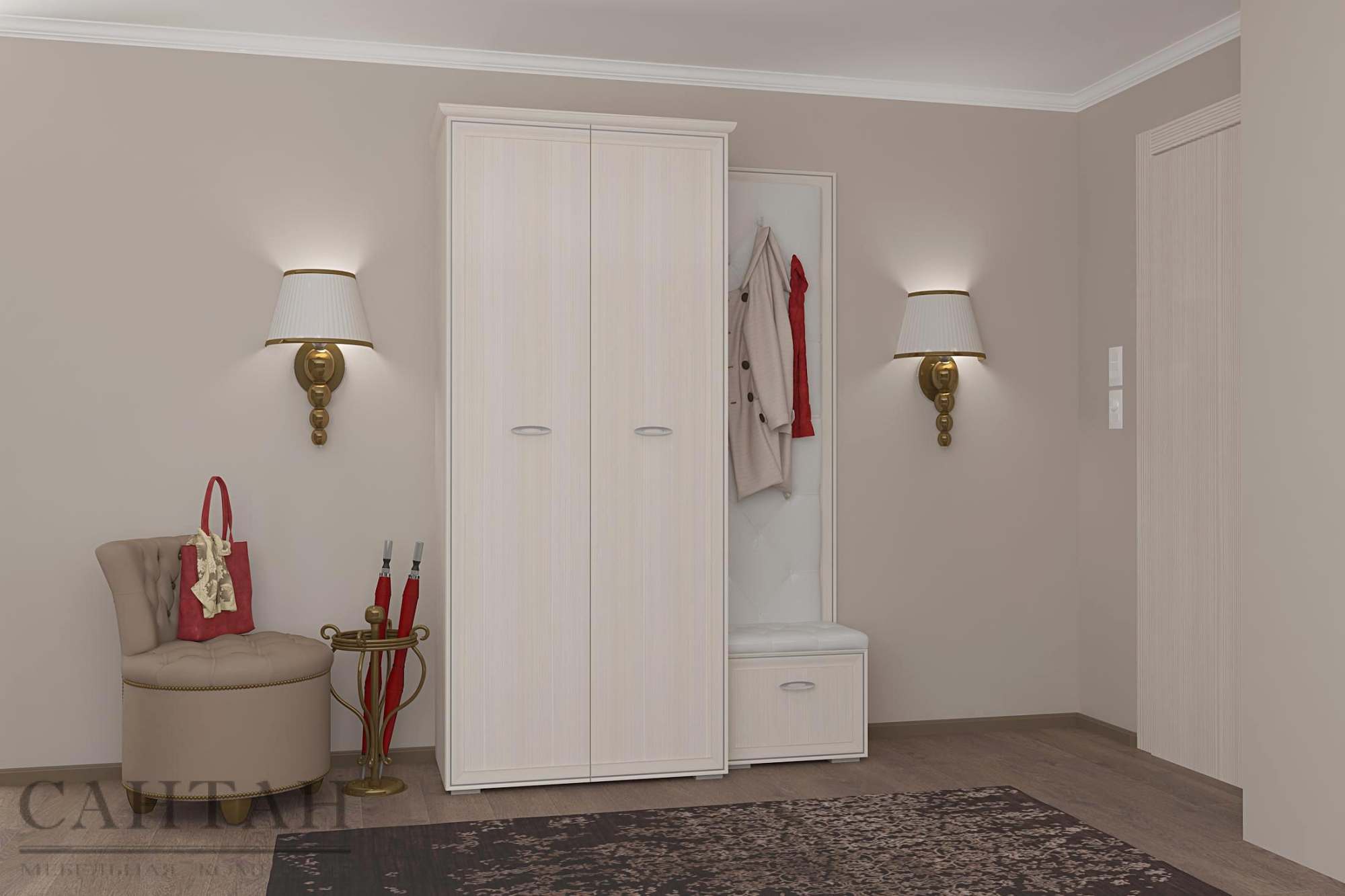 Прихожая «Эйми 4» Бодега белая/Патина серебро